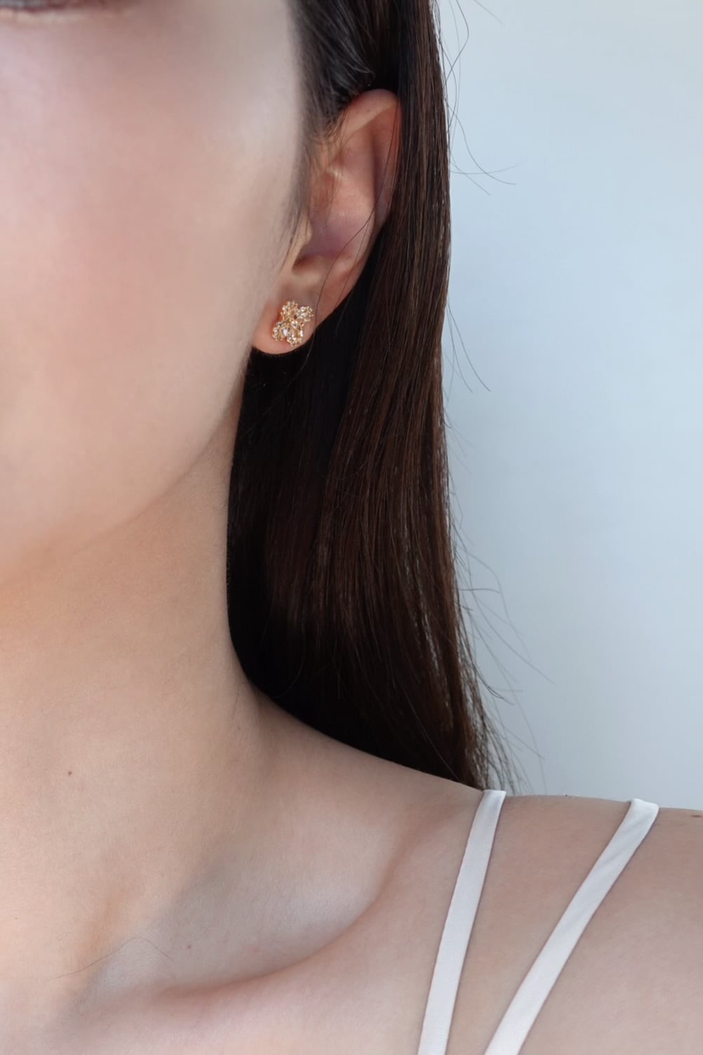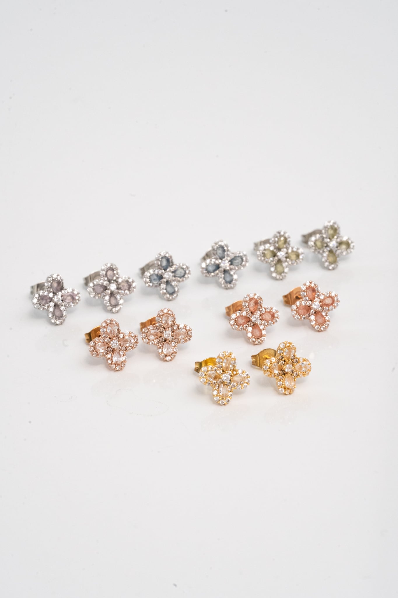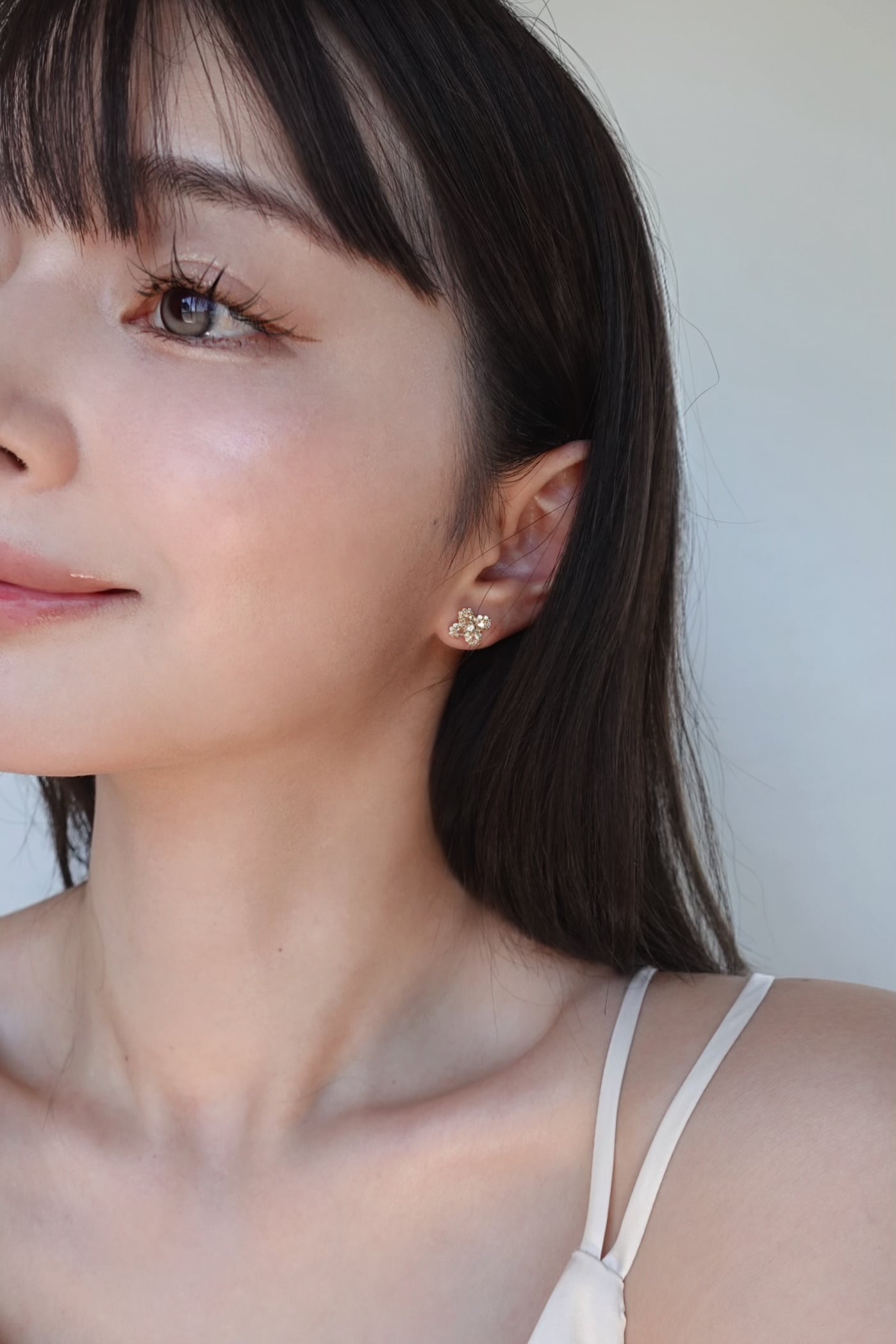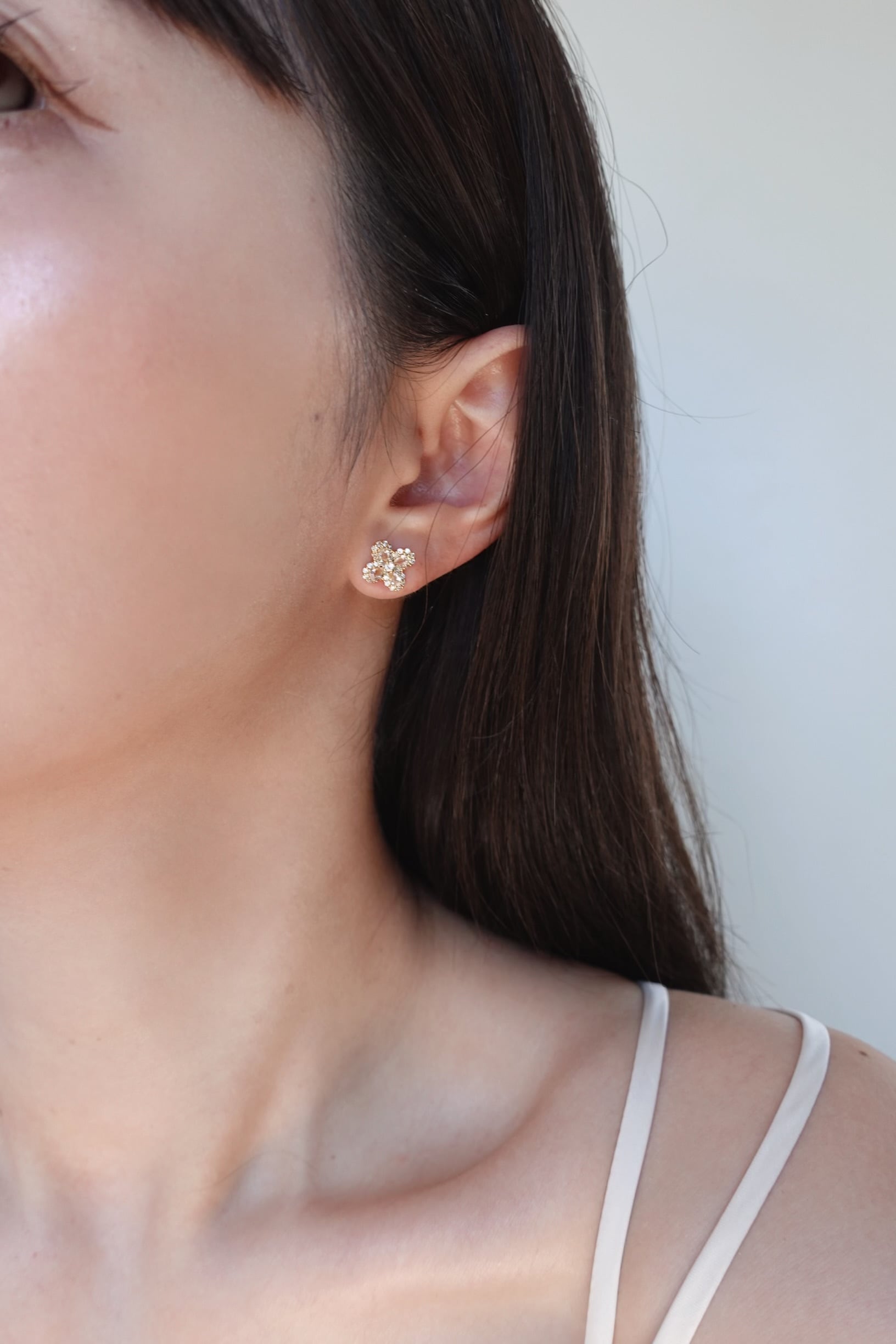 可憐な花びらをモチーフに、きらめくストーンを贅沢に敷き詰めたフラワーピアスミニサイズのクローバーミニピアス。
