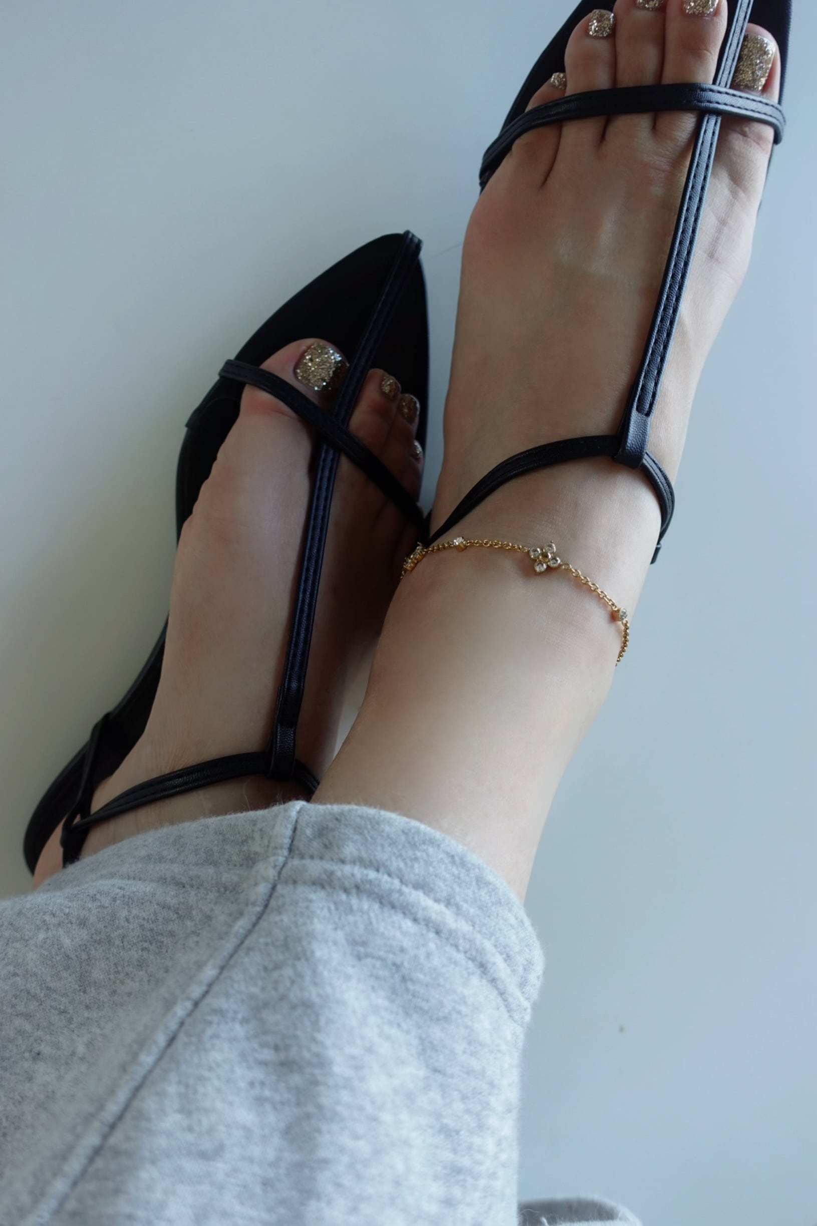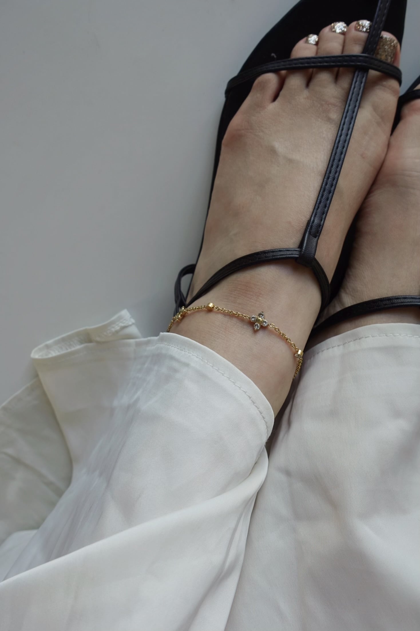 ダイヤのようにきらめくストーンをあしらったフラワーモチーフが、華奢なチェーンの上で上品に輝きます。