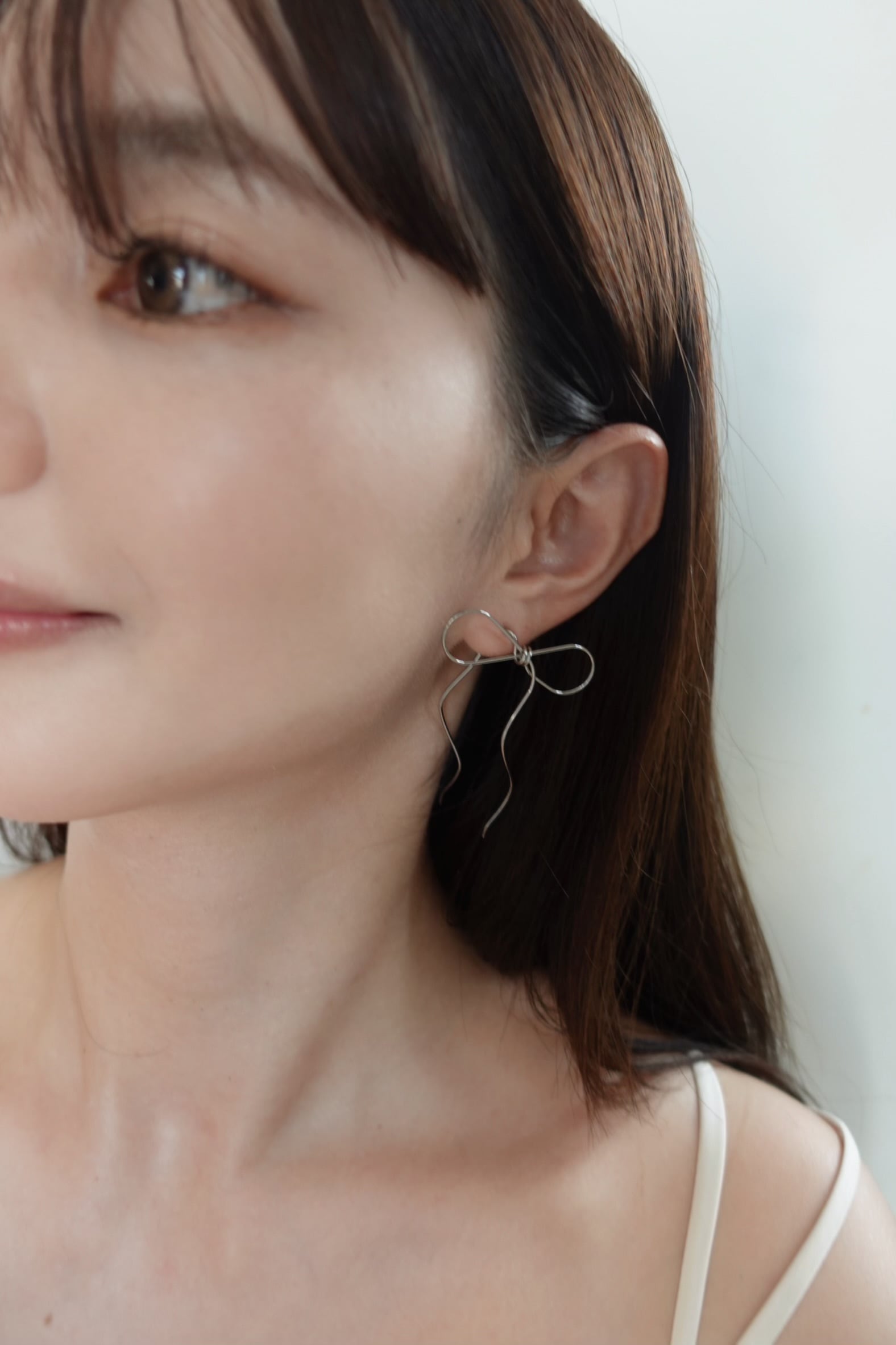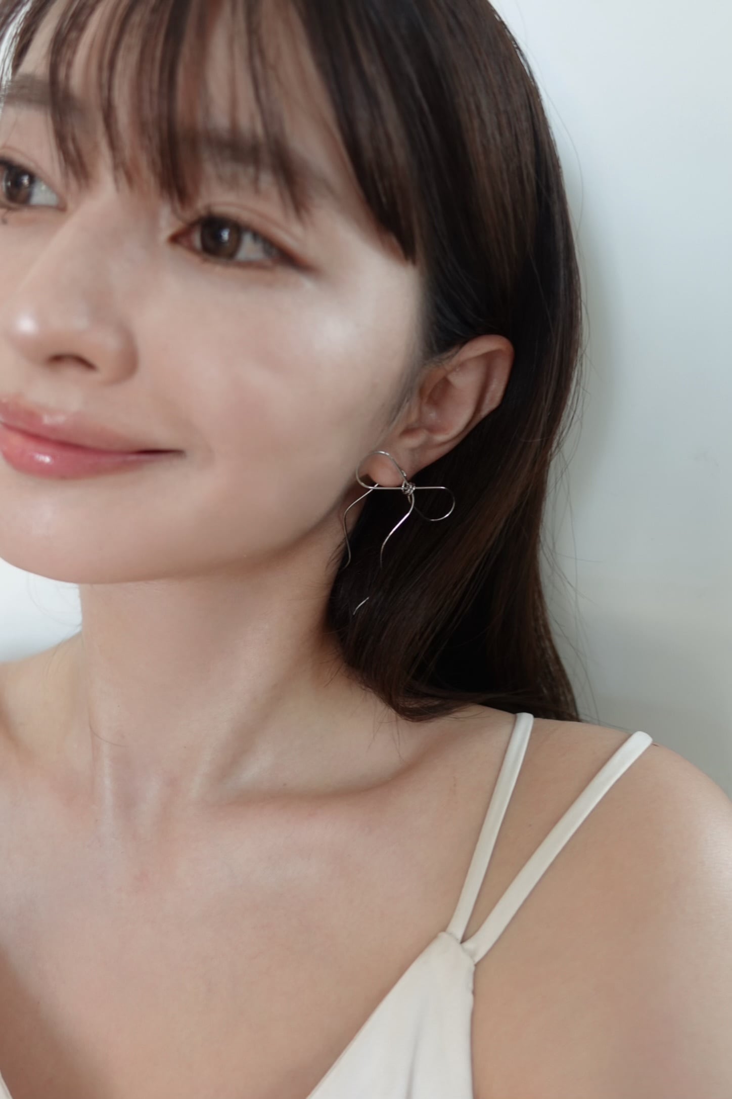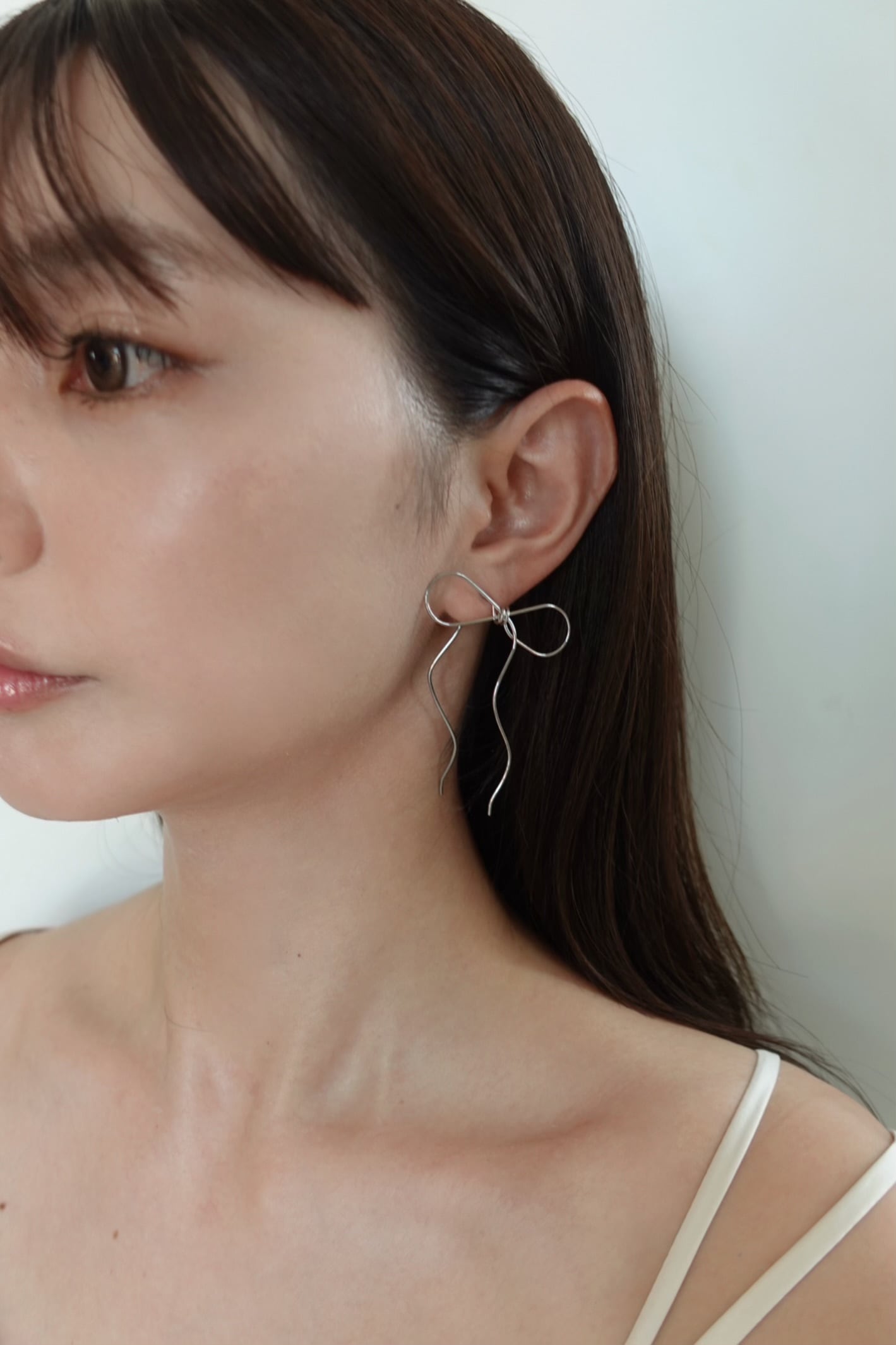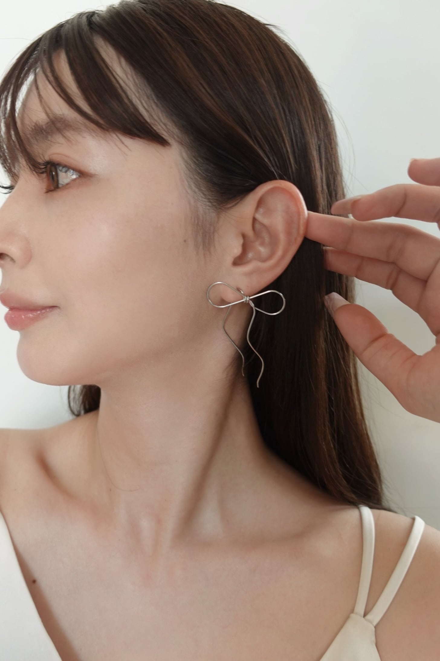 すっーと着用するリボンピアス。手作業で1点1点緩やかなカーブデザインを施しております。
