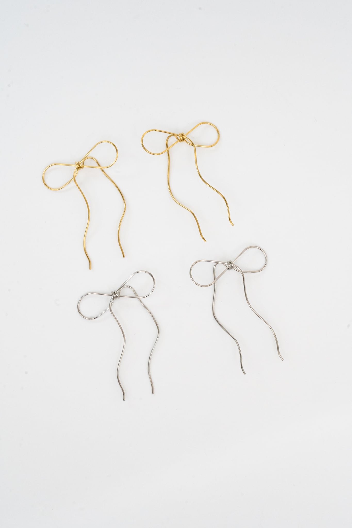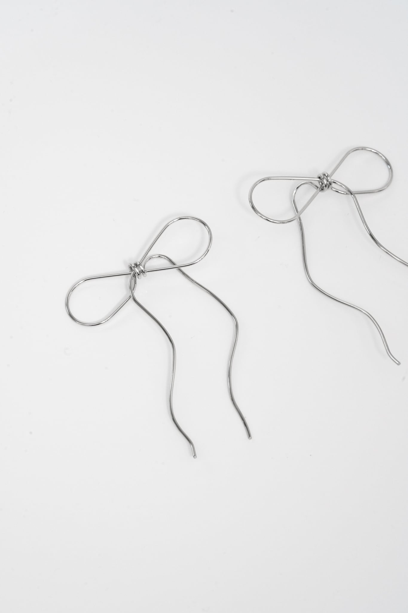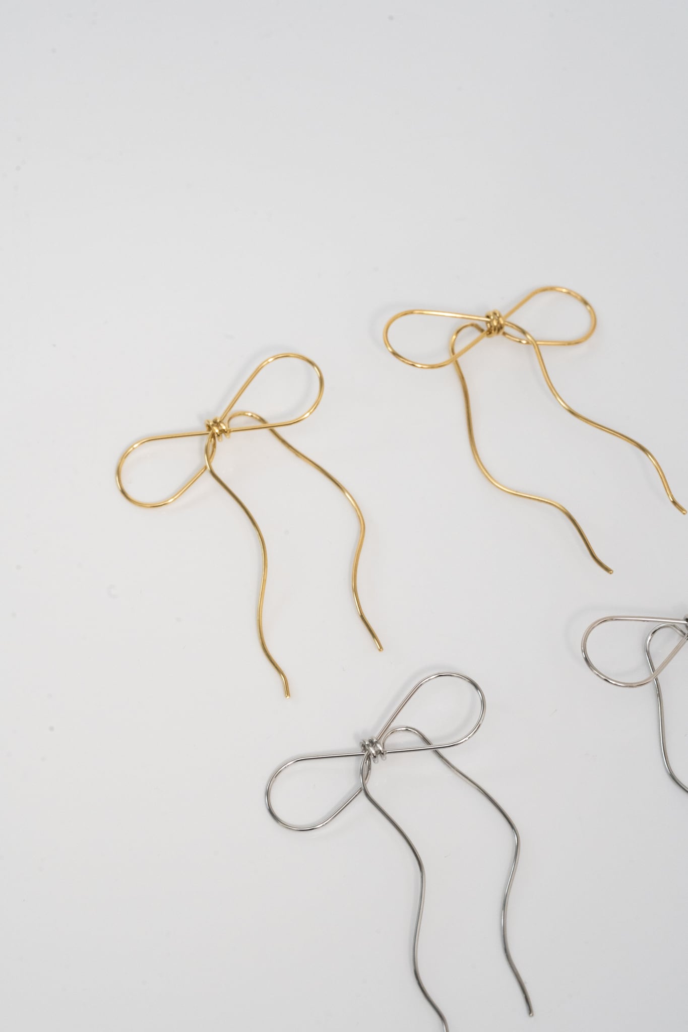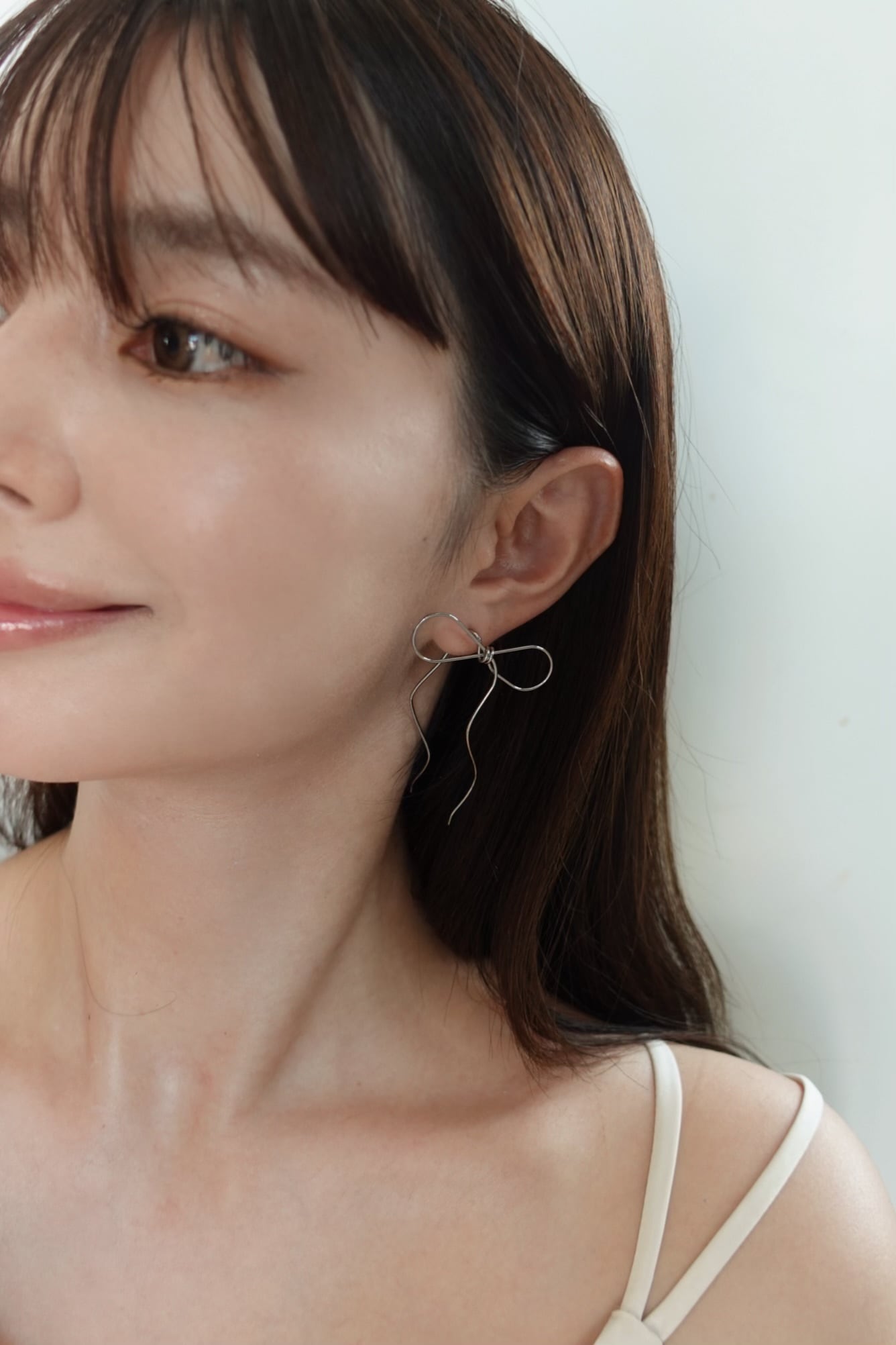 すっーと着用するリボンピアス。手作業で1点1点緩やかなカーブデザインを施しております。
