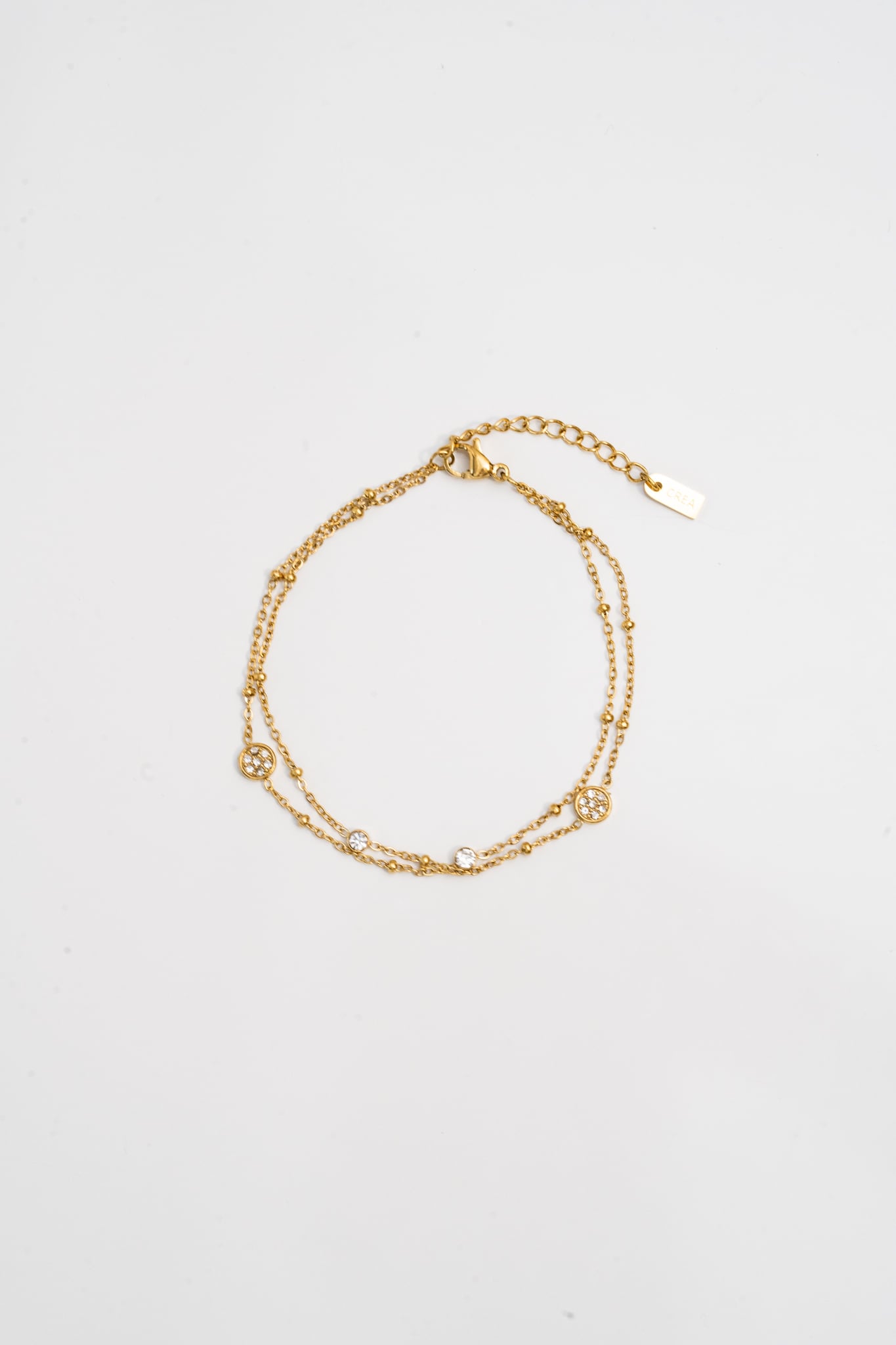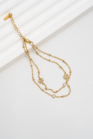 繊細なチェーンと煌めくストーンが手元を華やかに彩る、2連デザインのブレスレット。