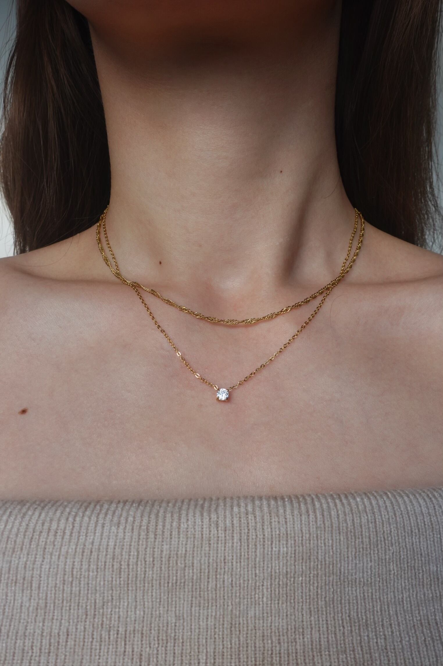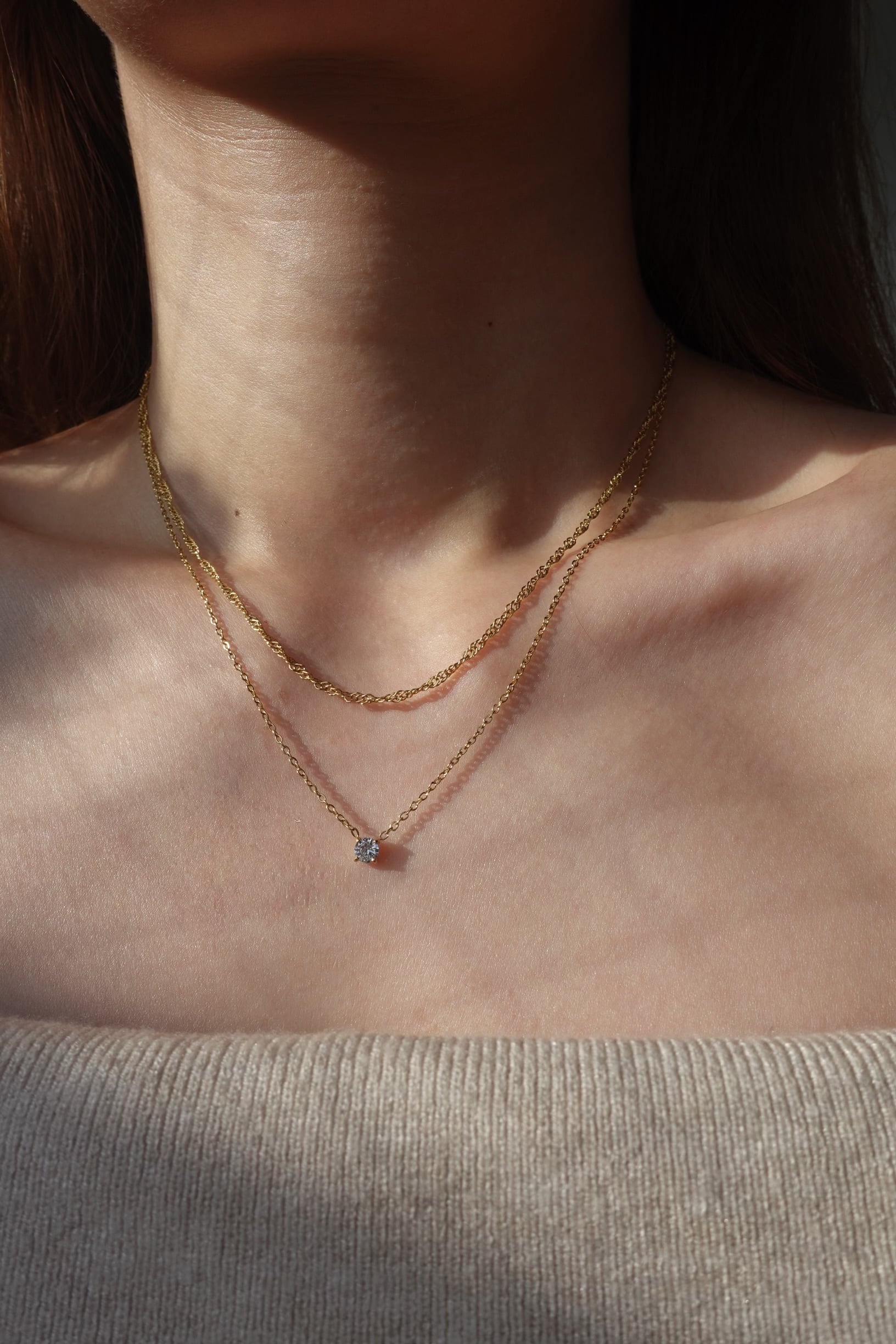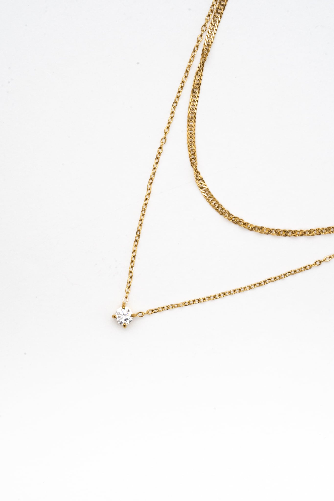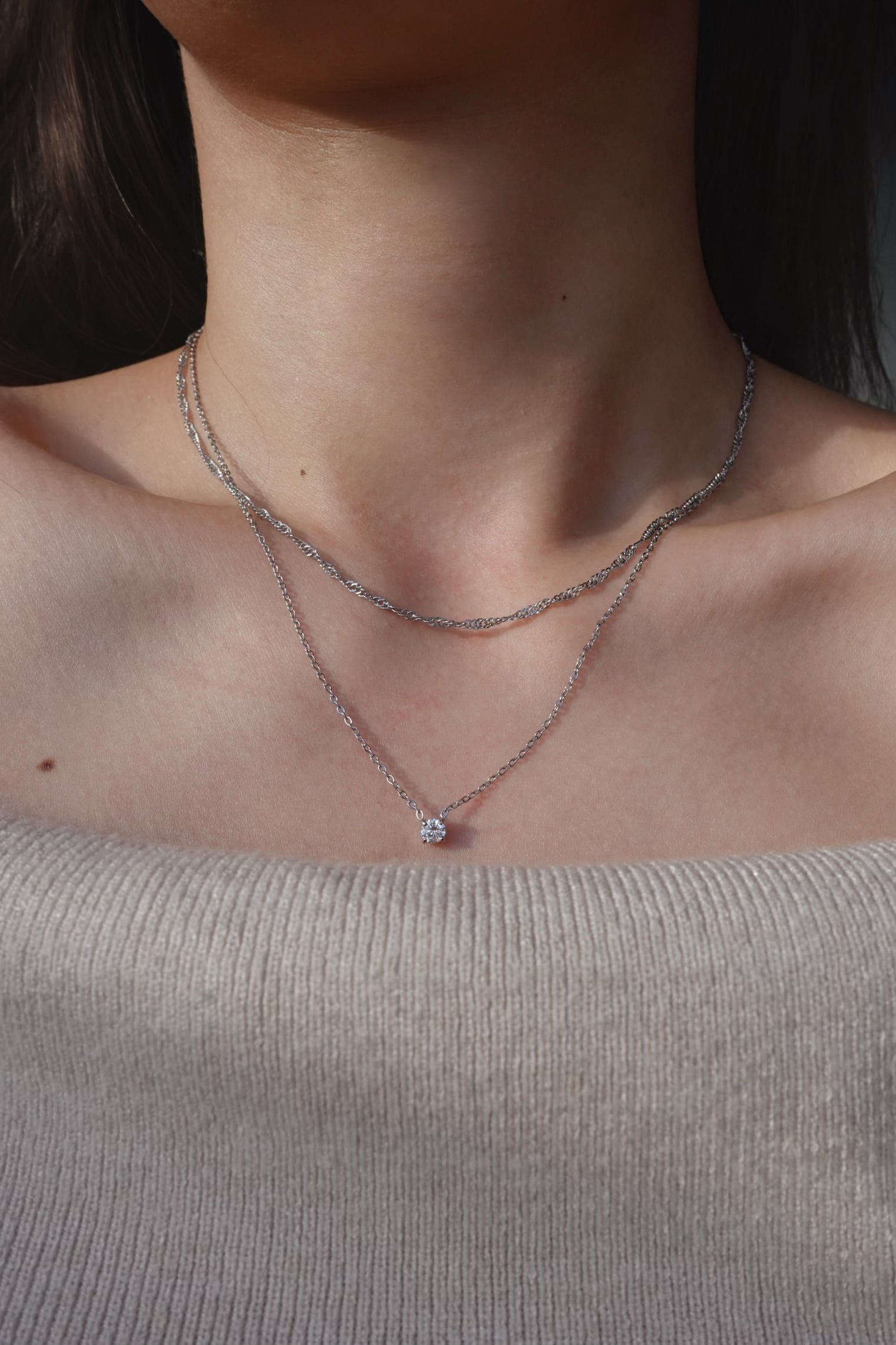 ひとつ身に着けるだけで、計算された2連レイヤードが完成するネックレス。