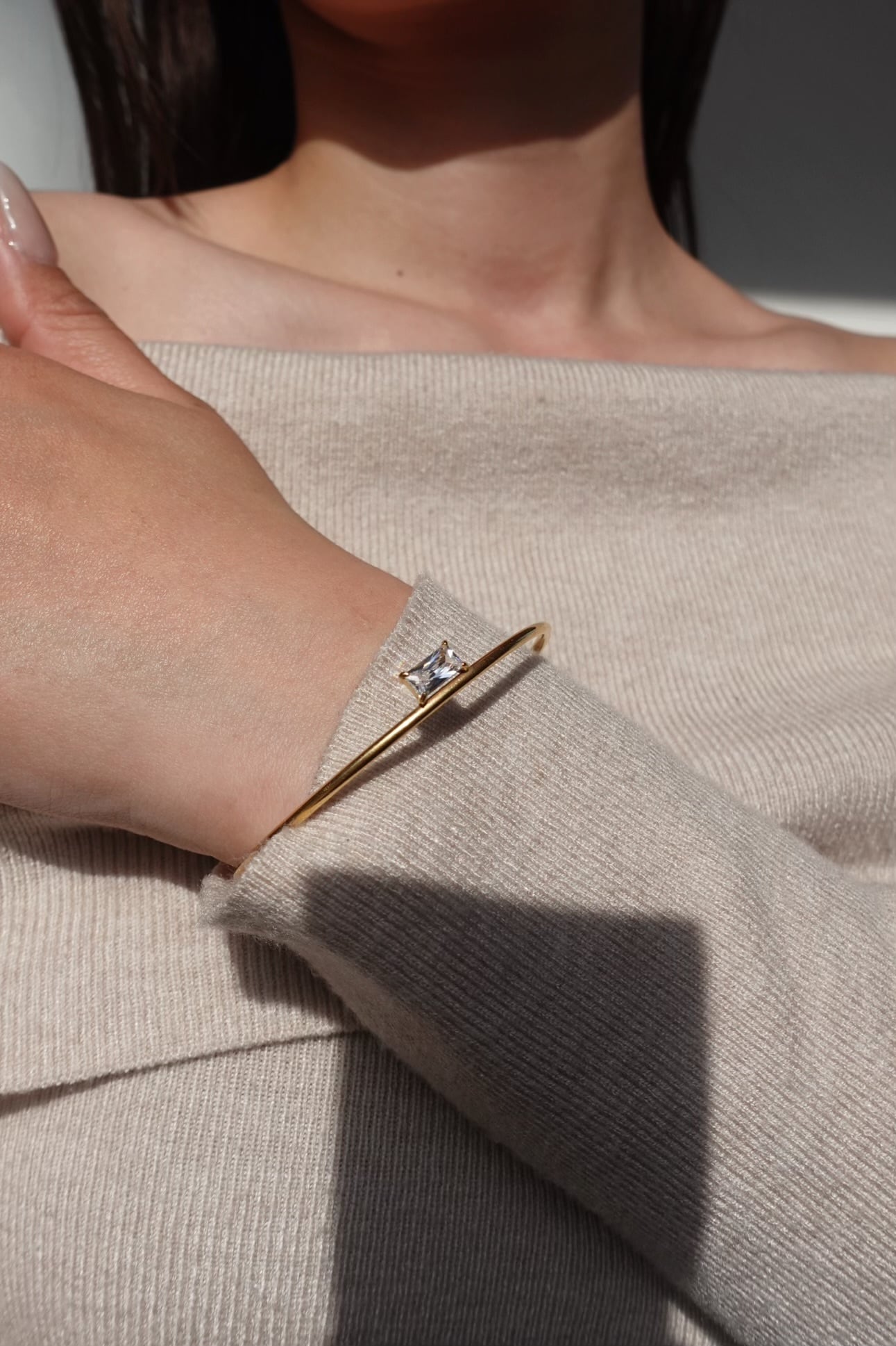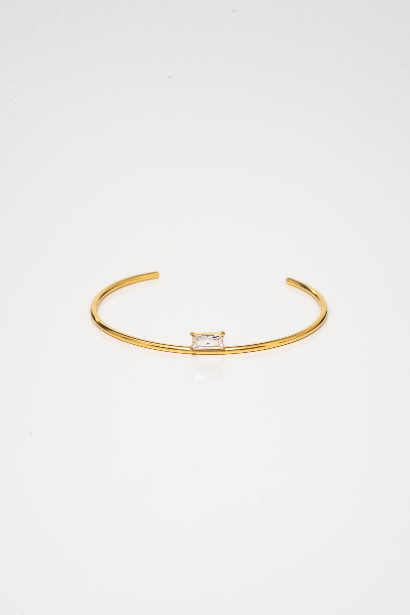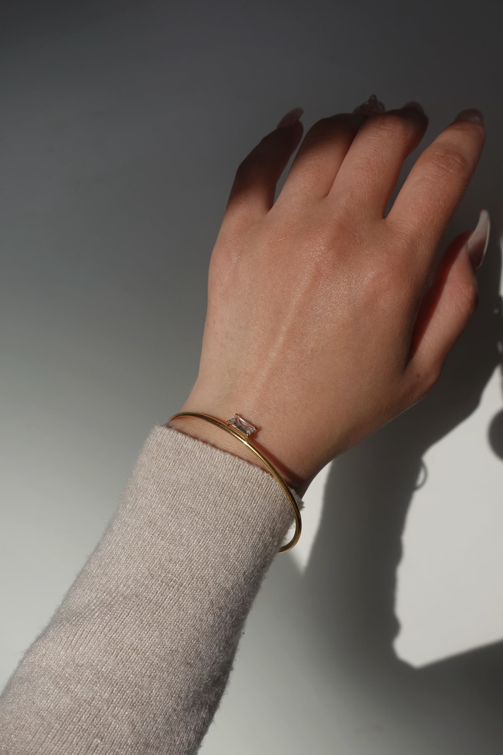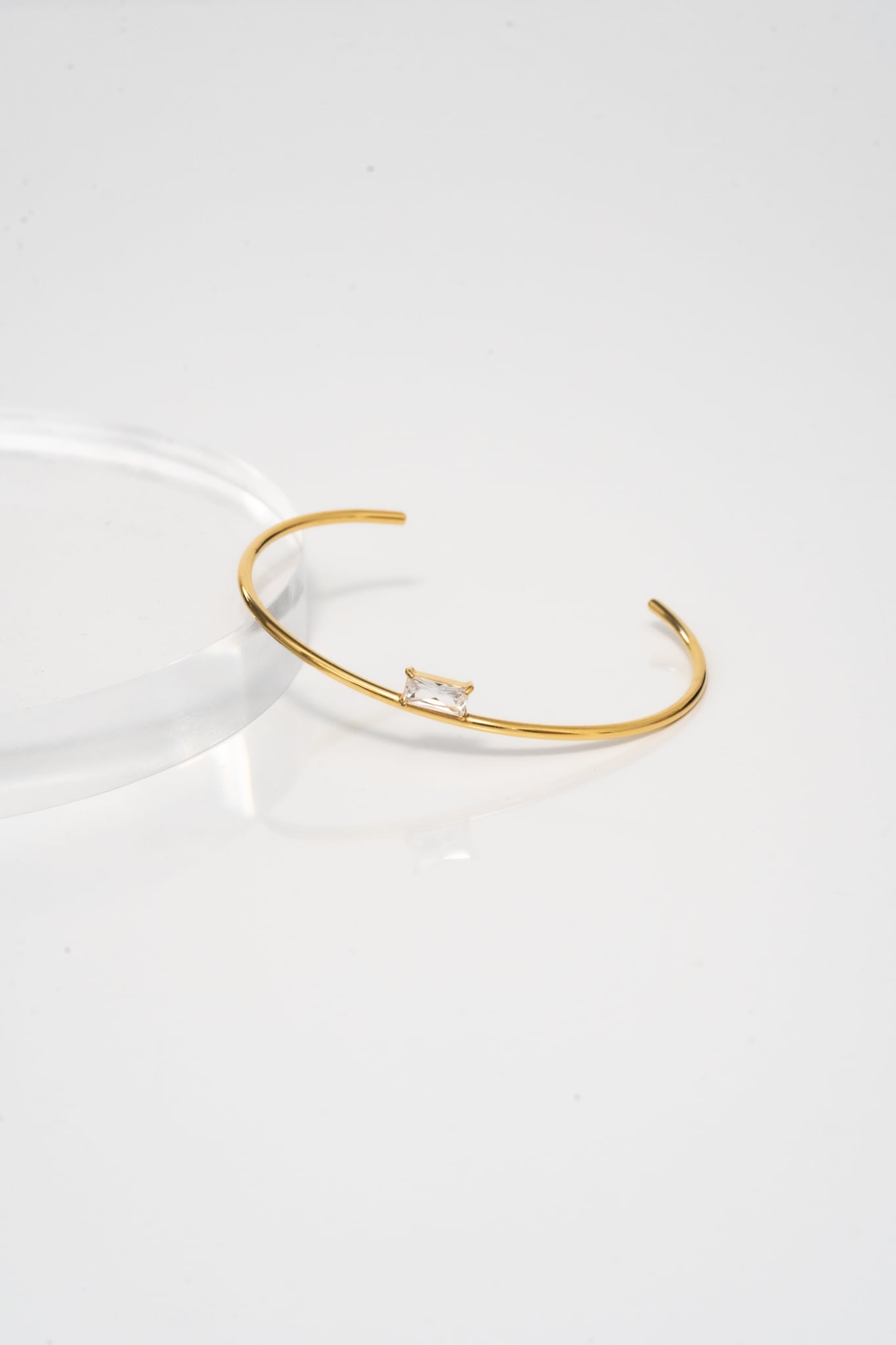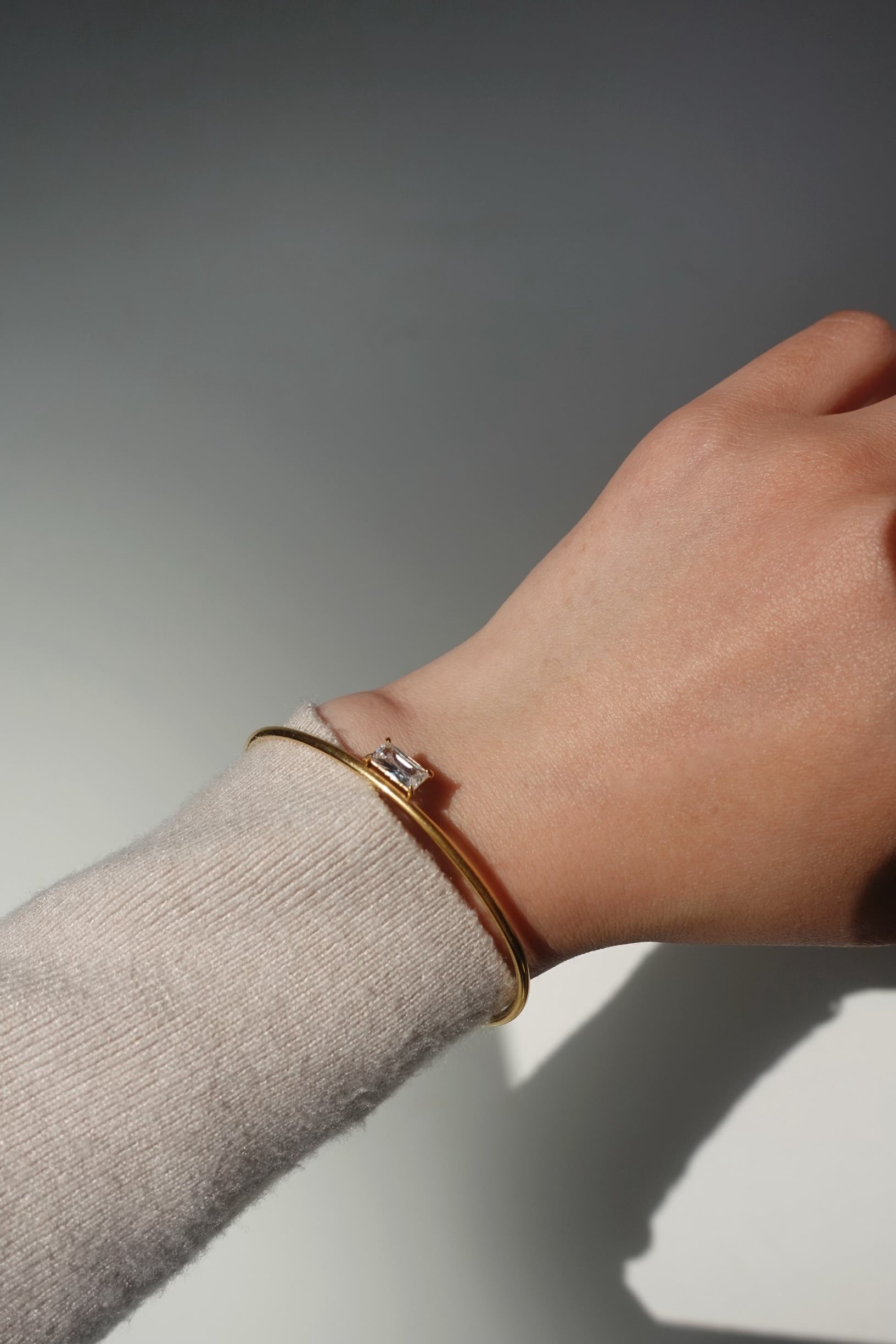 繊細なラインに、凛とした輝きを添えたミニマルデザインのバングル。