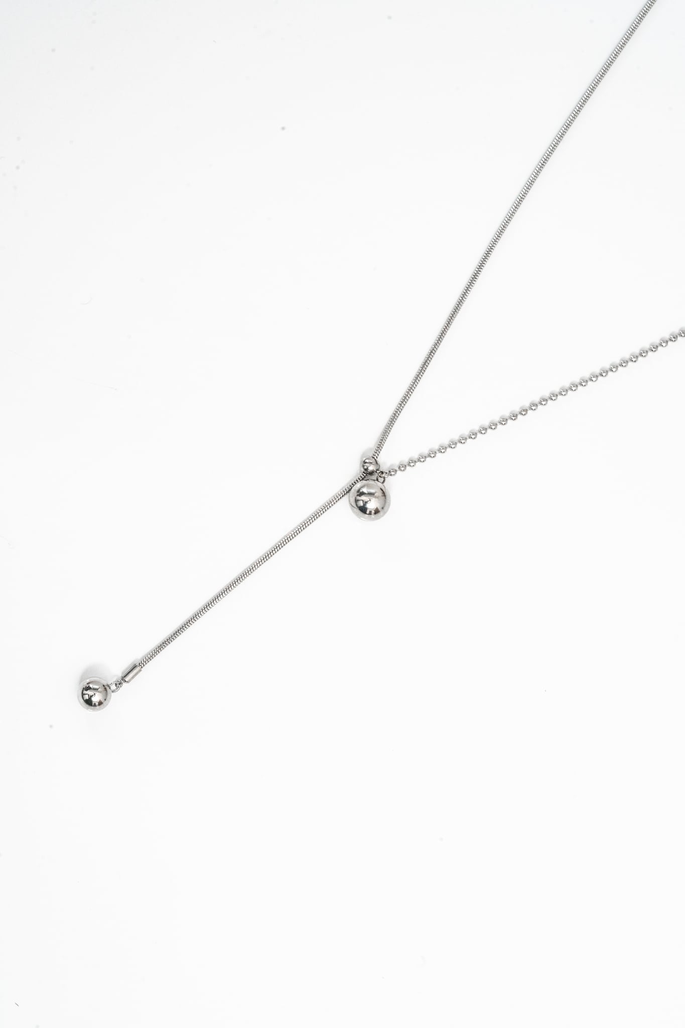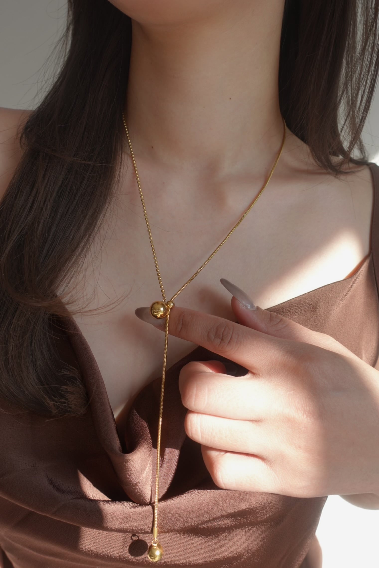 しなやかに流れるチェーンと、艶やかなボールモチーフが印象的なY字ネックレス。