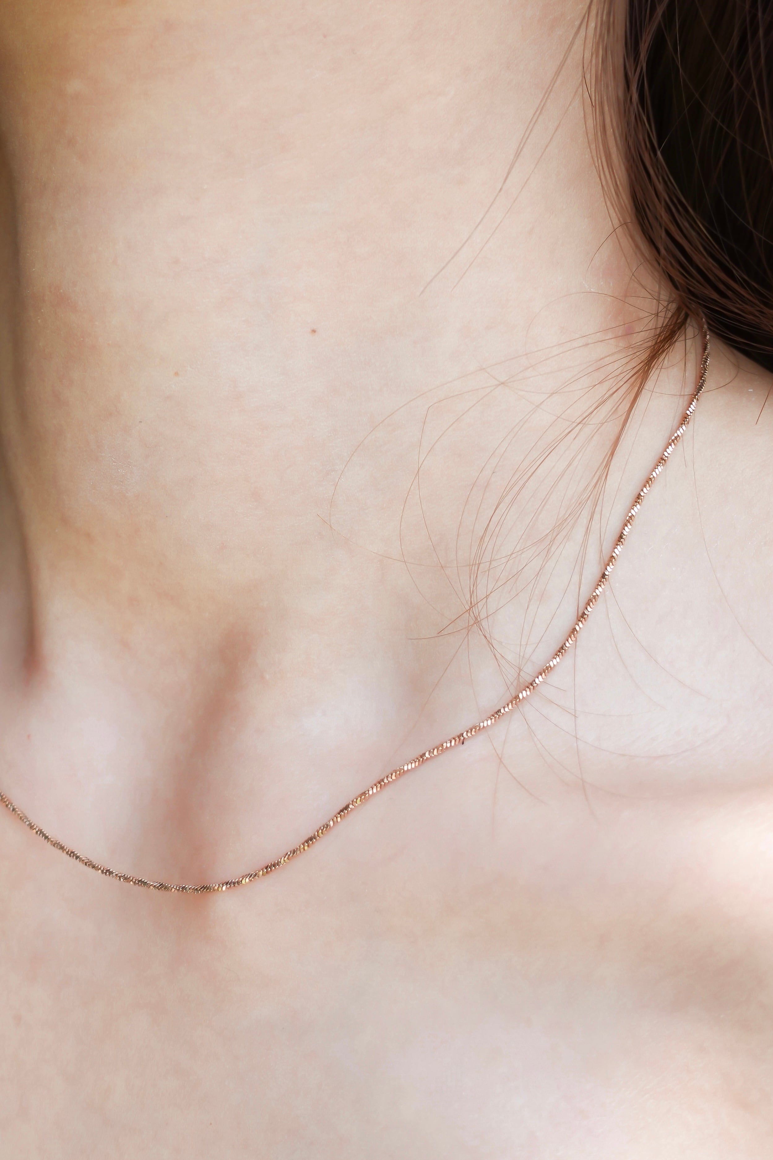 0.9mm/1.2mmから選べるファインツイストネックレス。