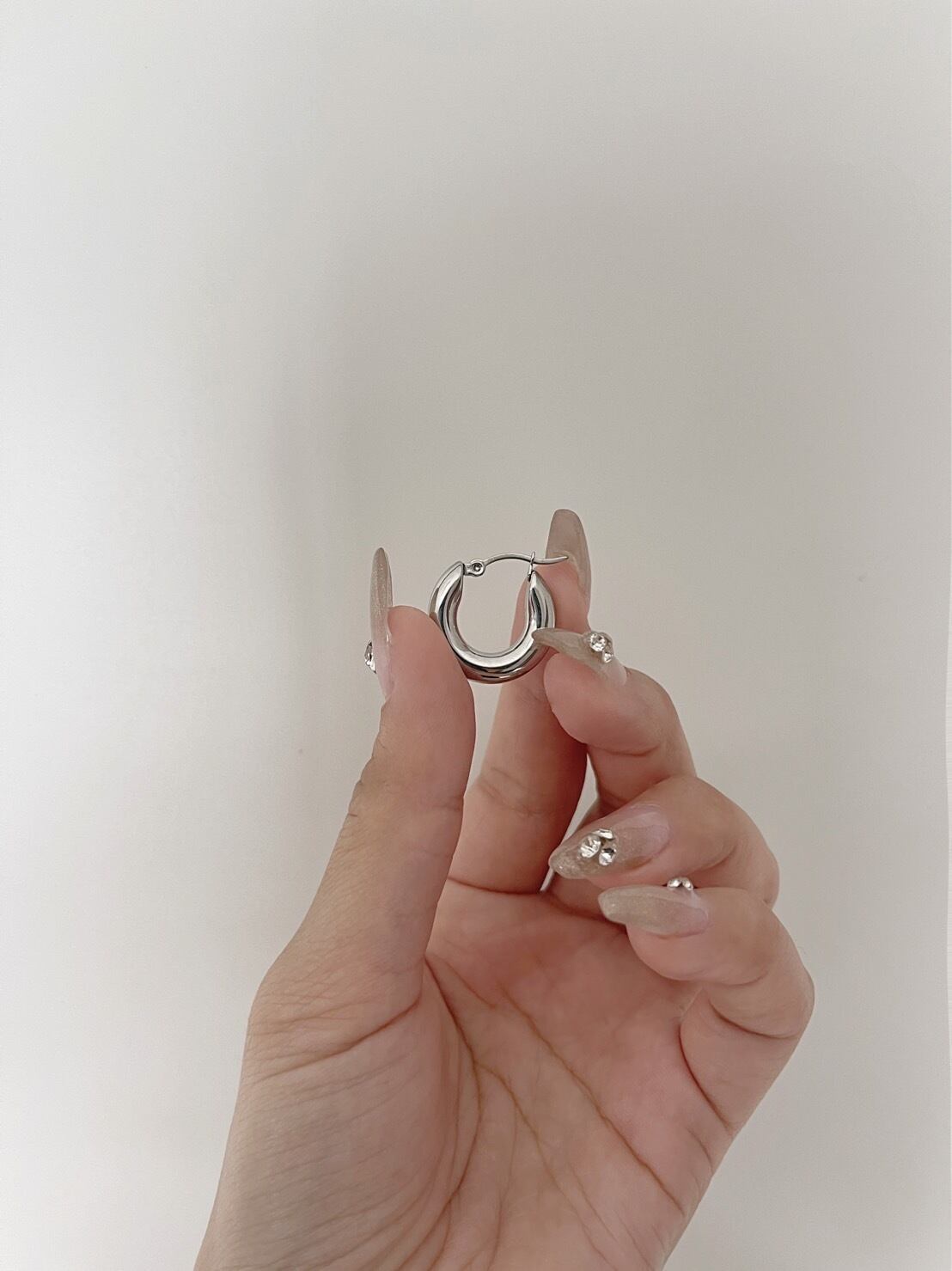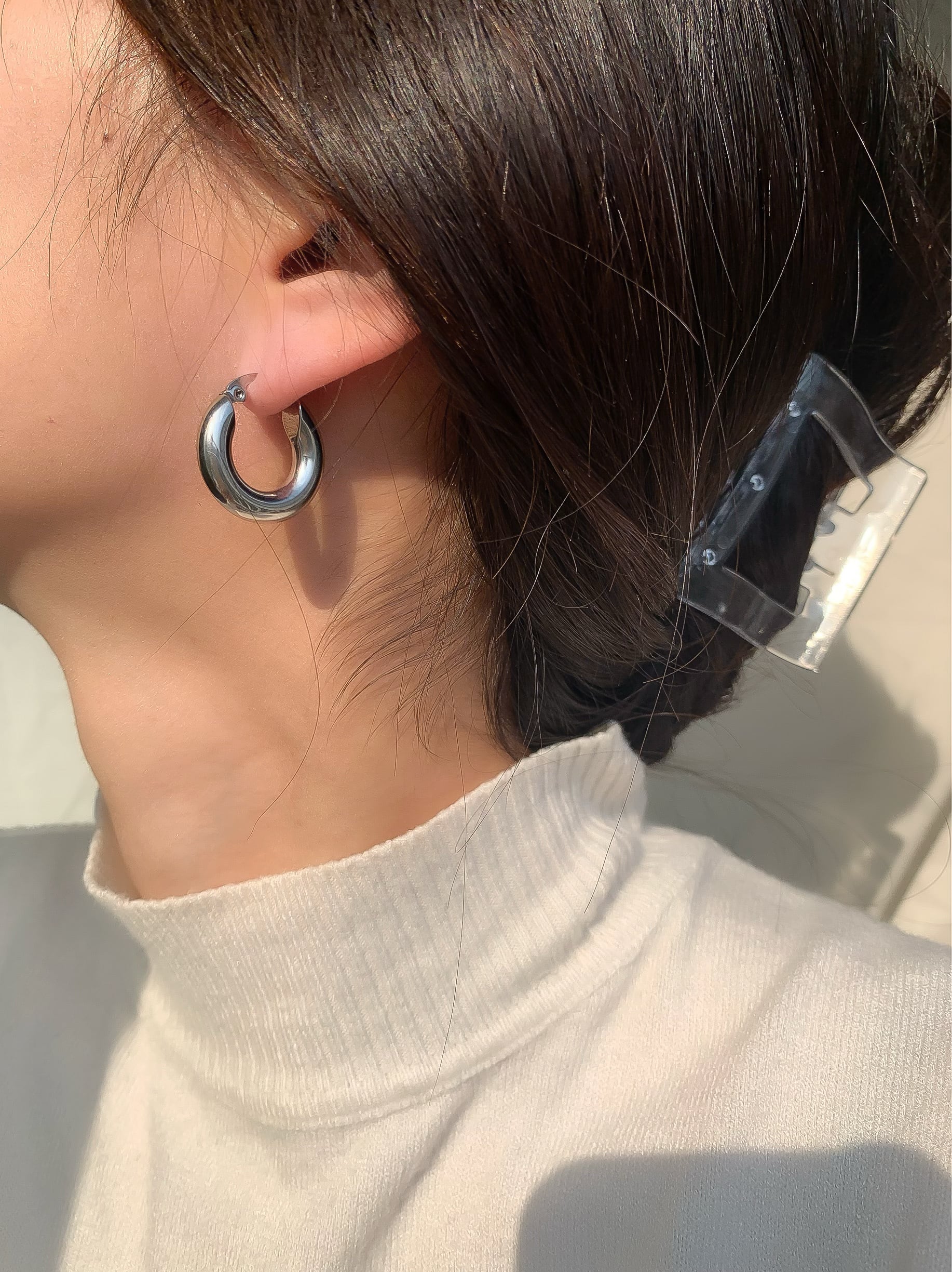シンプルフープピアスより幅の厚みがあるボリューム感のあるフープピアスです。