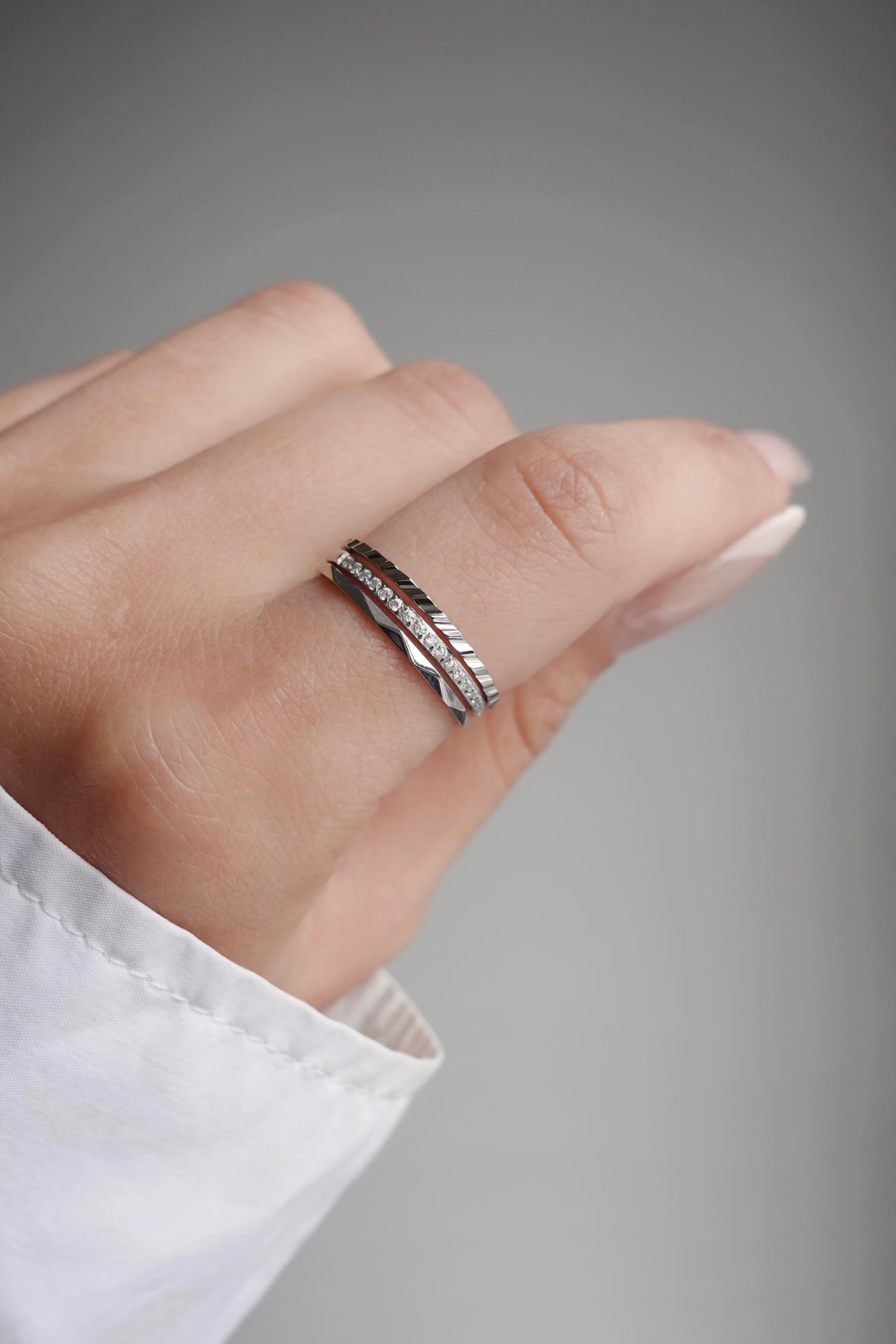 極細リングにカットを加えて表面感を演出したリングです。華奢なデザインは指先を綺麗に見せる効果があります。カットが入ったデザインは自分らしい普段使いに、かしこまり過ぎないフォーマルな装いにもあなたに寄り添い続けてくれる商品です。