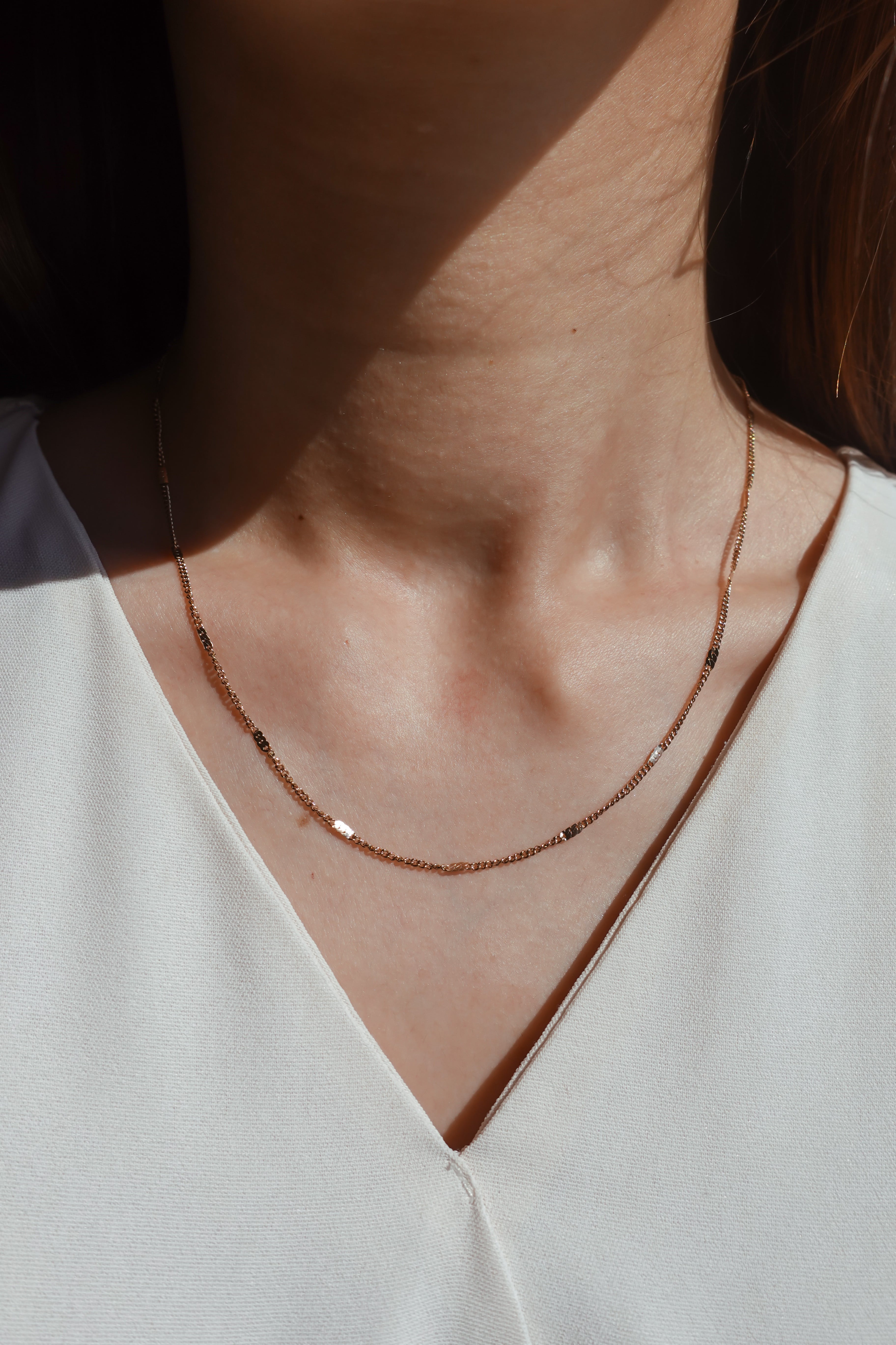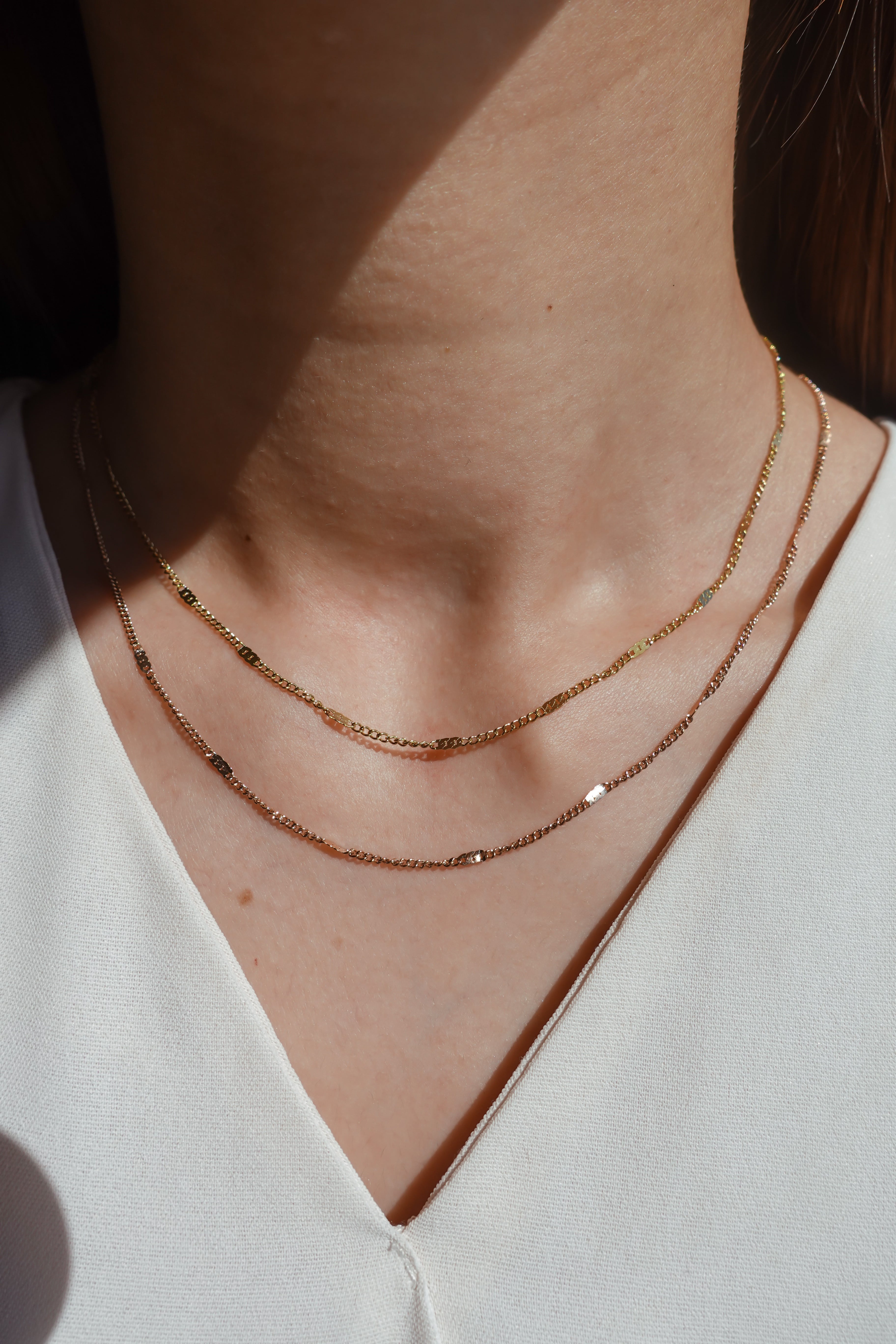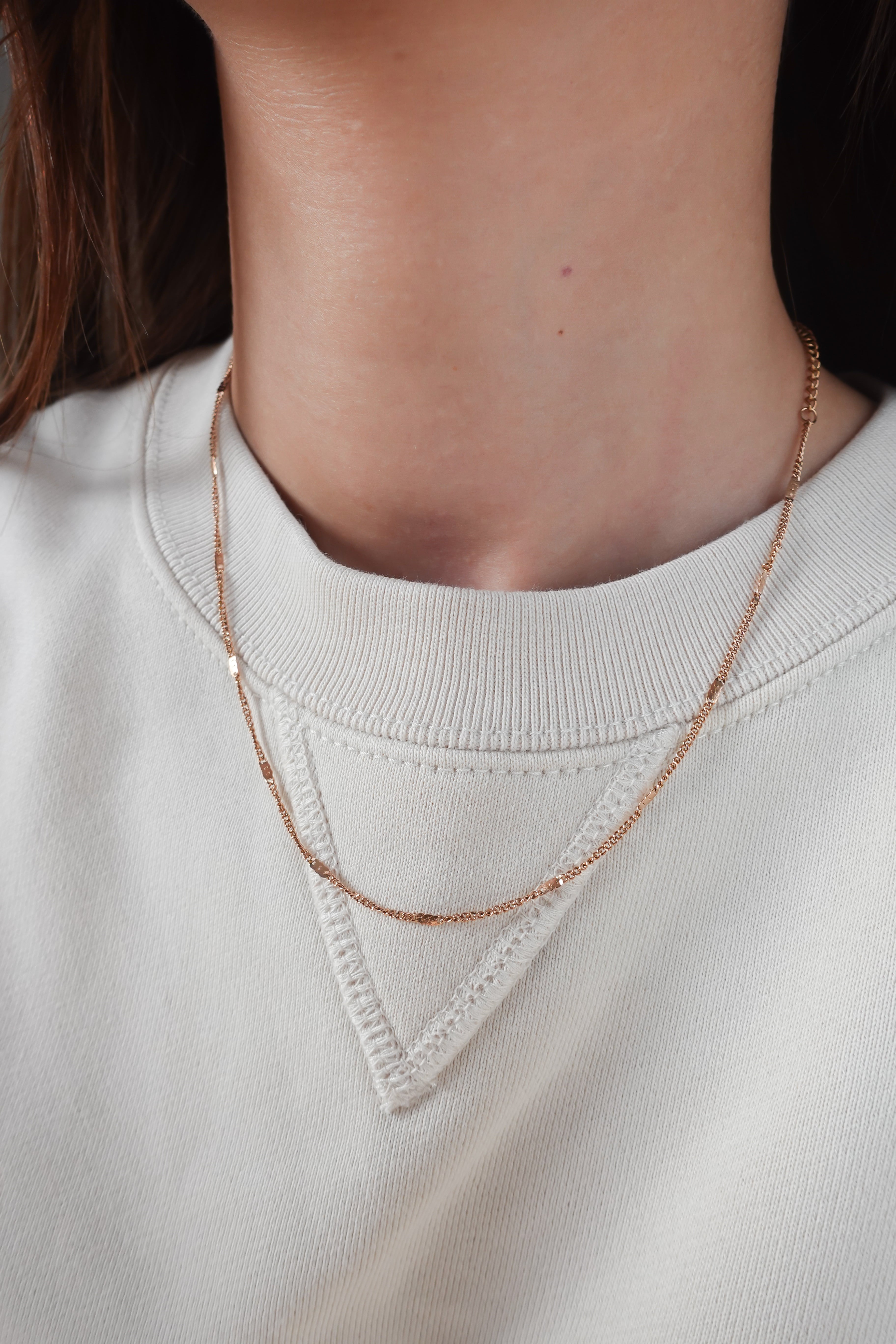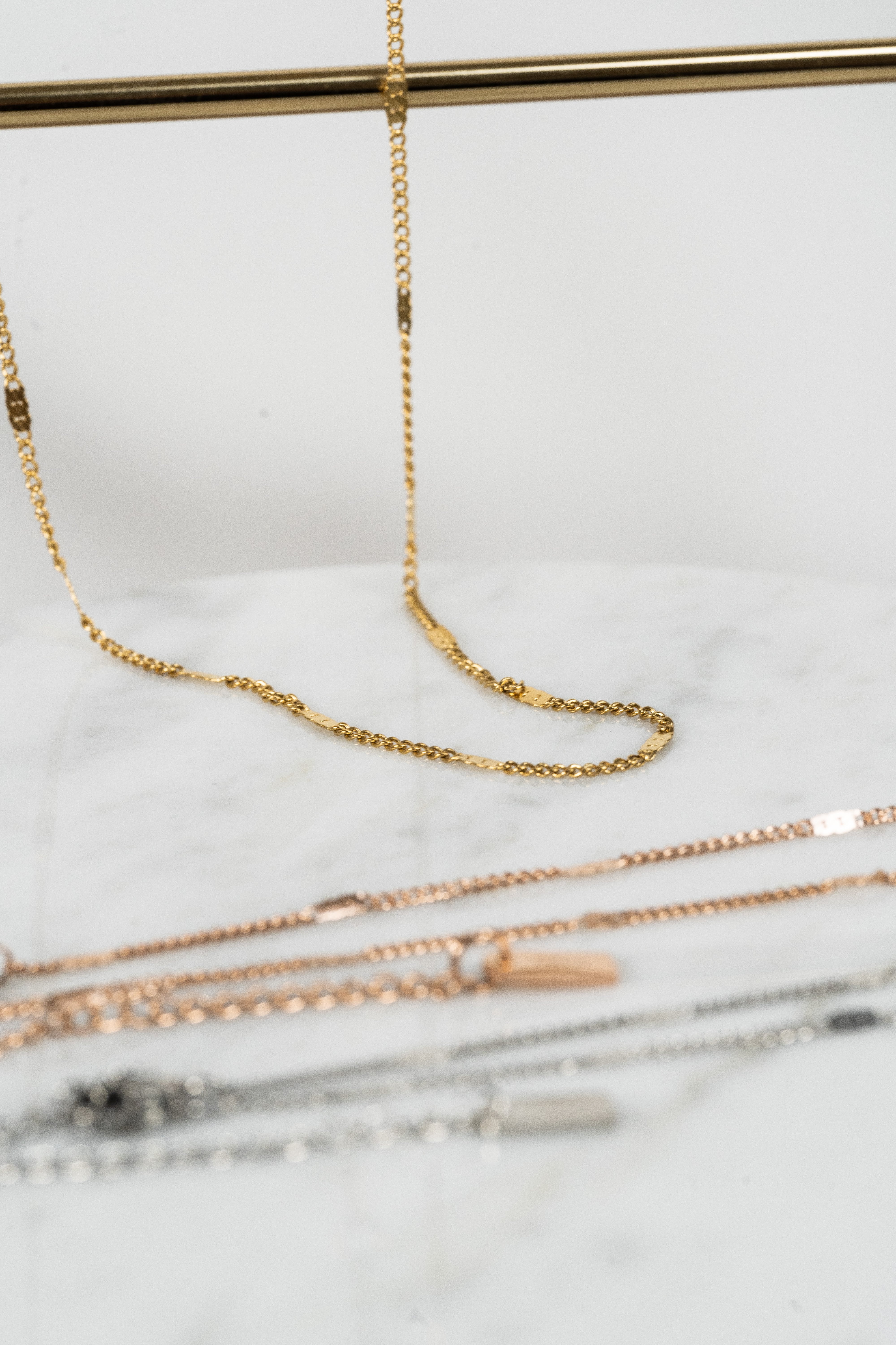全てのアクセサリーのベースになるネックレスです。どんなアクセサリーとも馴染みやすくコーディネートにも取り入れやすい商品。