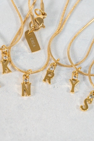 小ぶりにデザインしたアルファベットペンダントの上にちょこんとジルコニアネックレスをセッティングした商品。ちょうどいいサイズ感は主張しすぎず、毎日の普段使いにぴったりです。