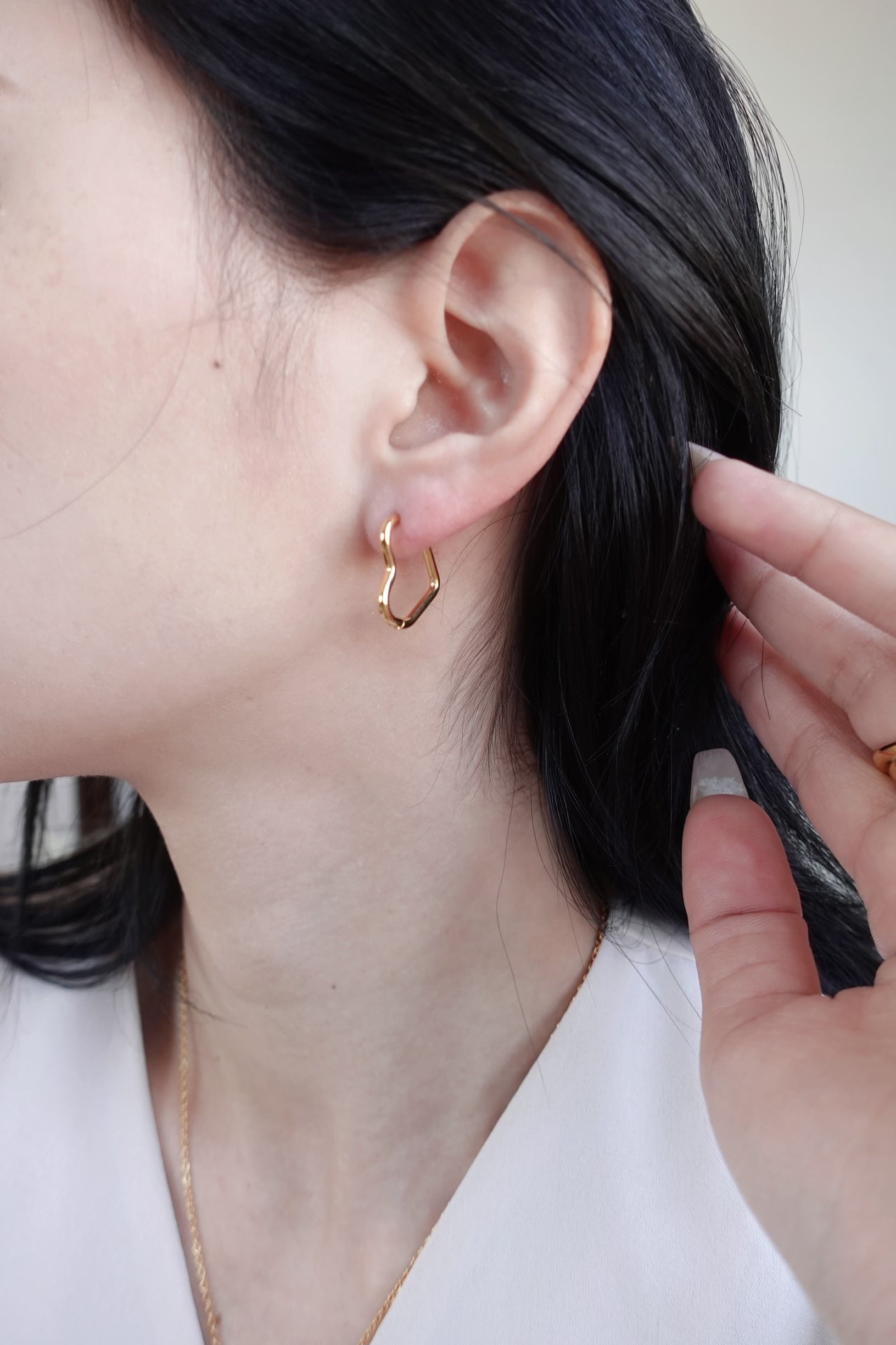 heart hoop pierceに純金24Kコーティングを施したハイエンドピアス。