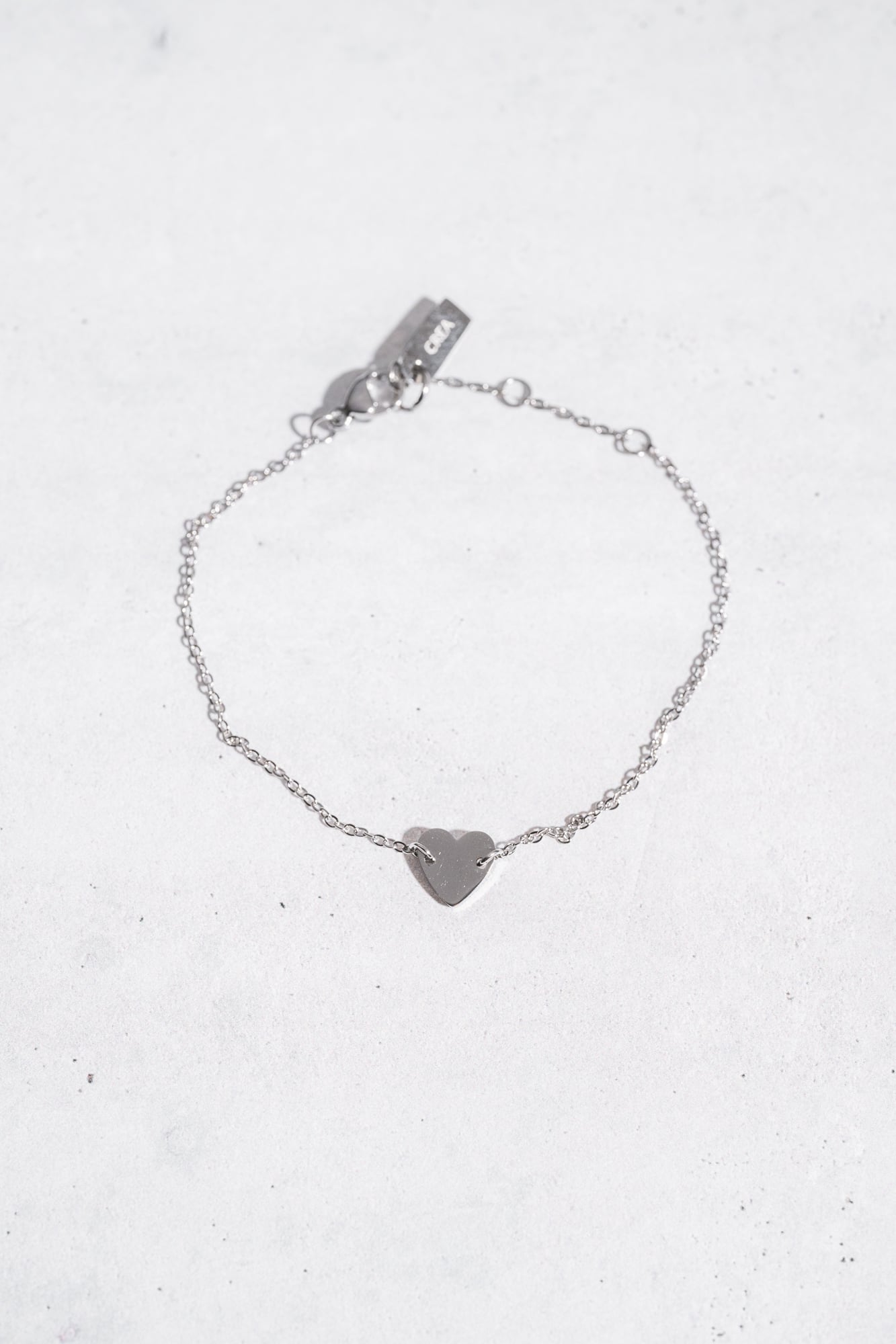 シンプルな細身アズキチェーンにシンプルなハートペンダントを施したブレスレット。