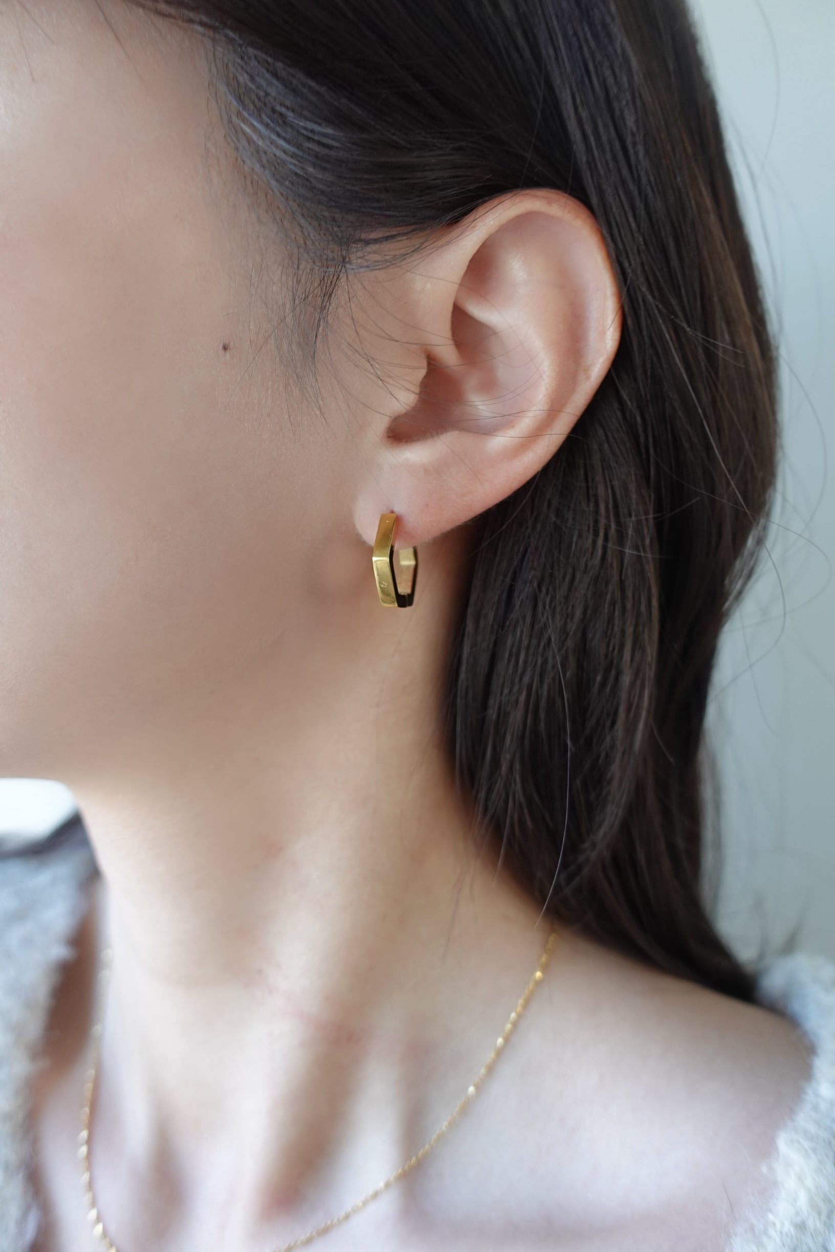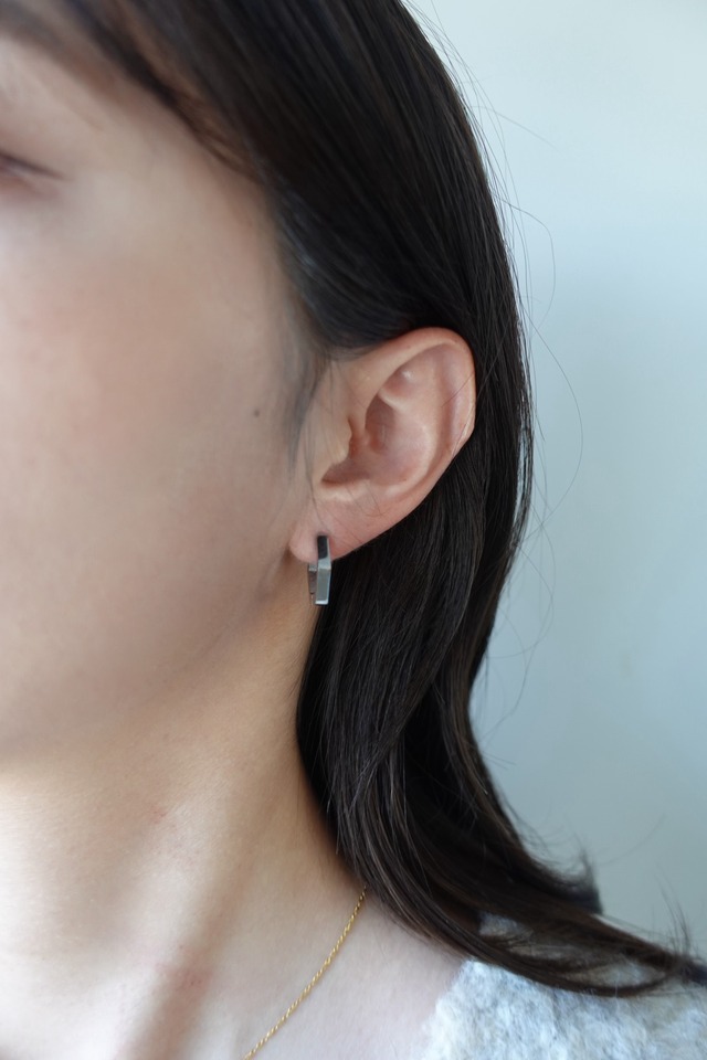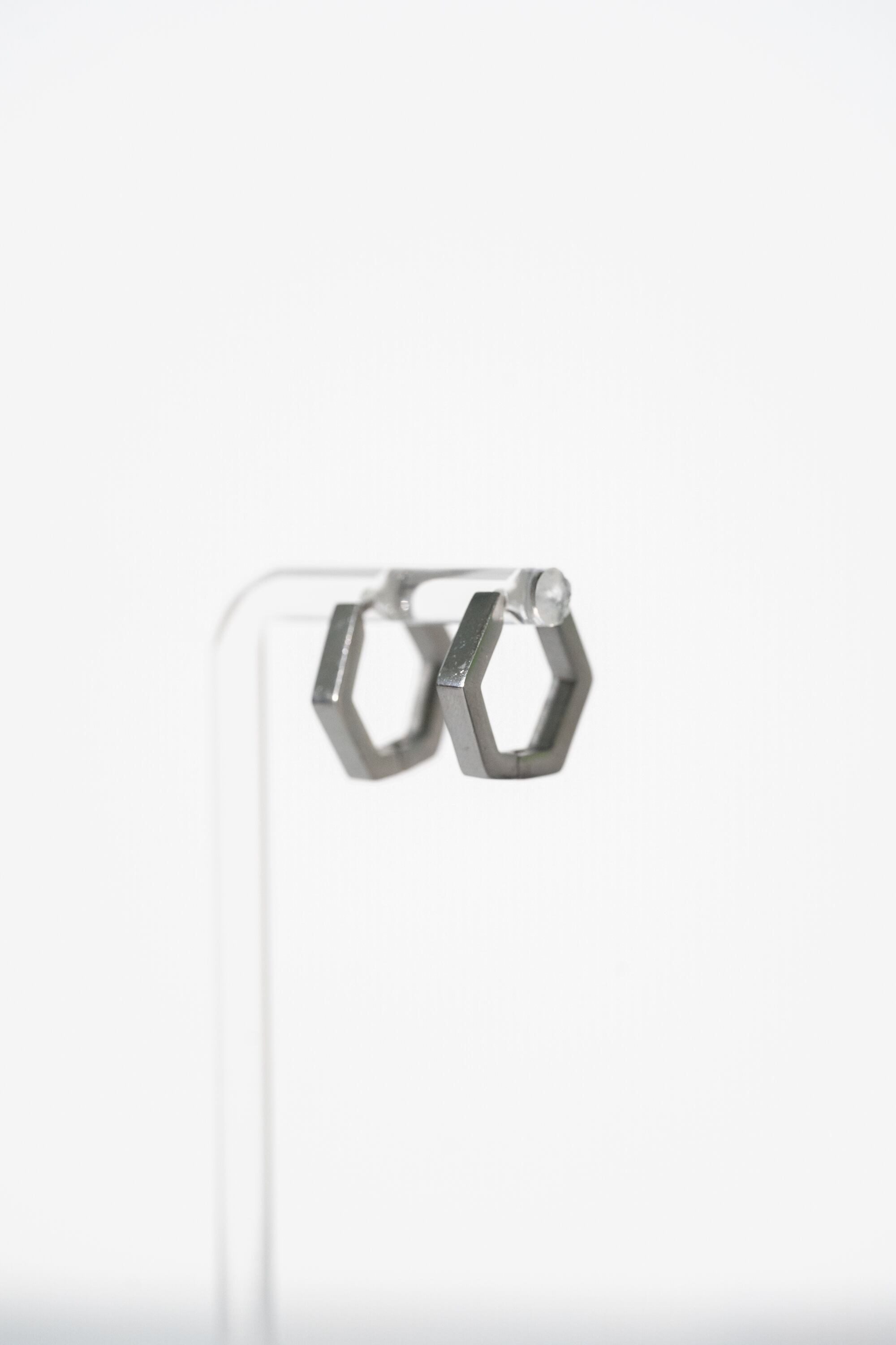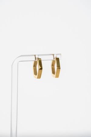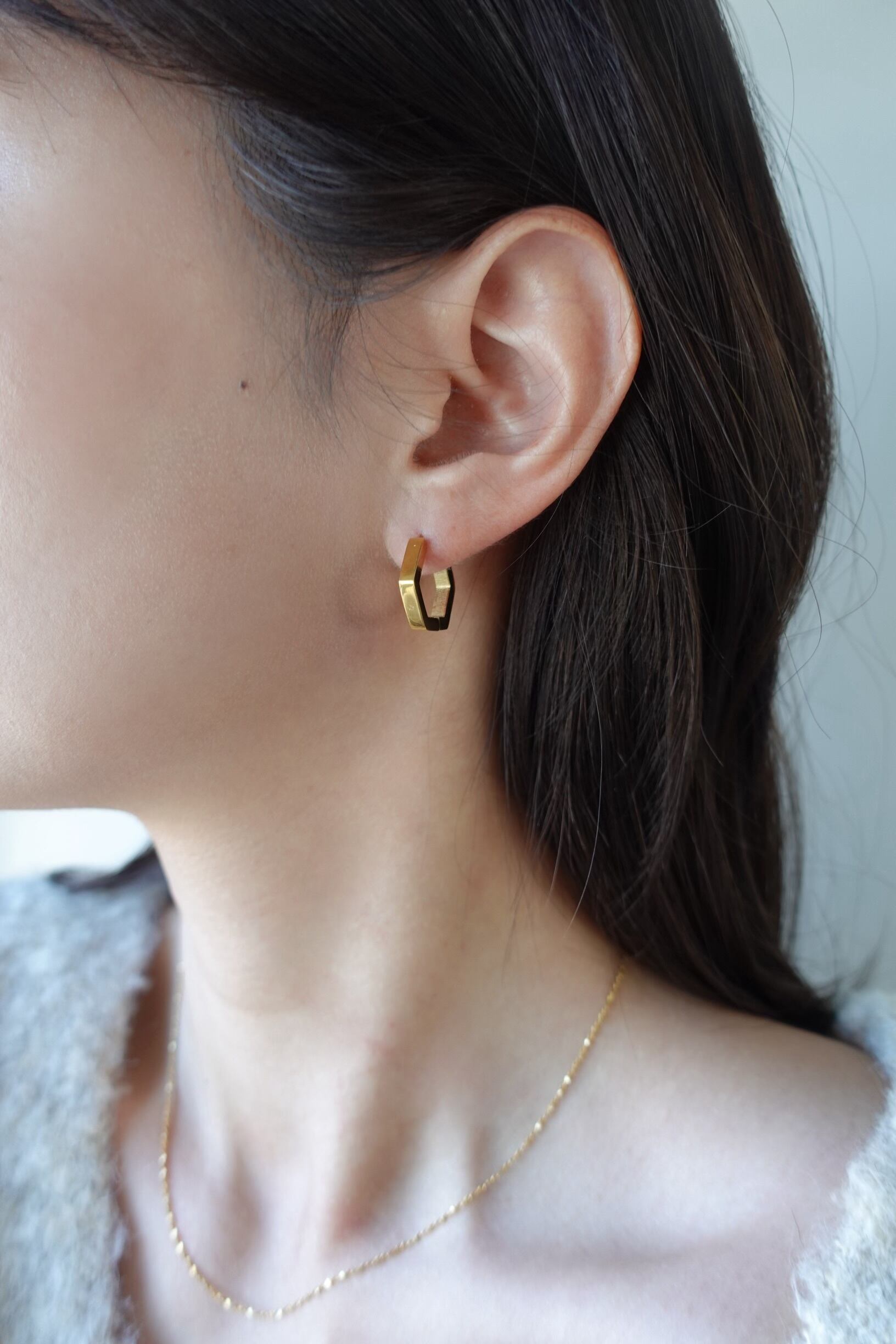 6角形のシンプルなフープピアス。キャッチレスでご使用いただけるピアスです。