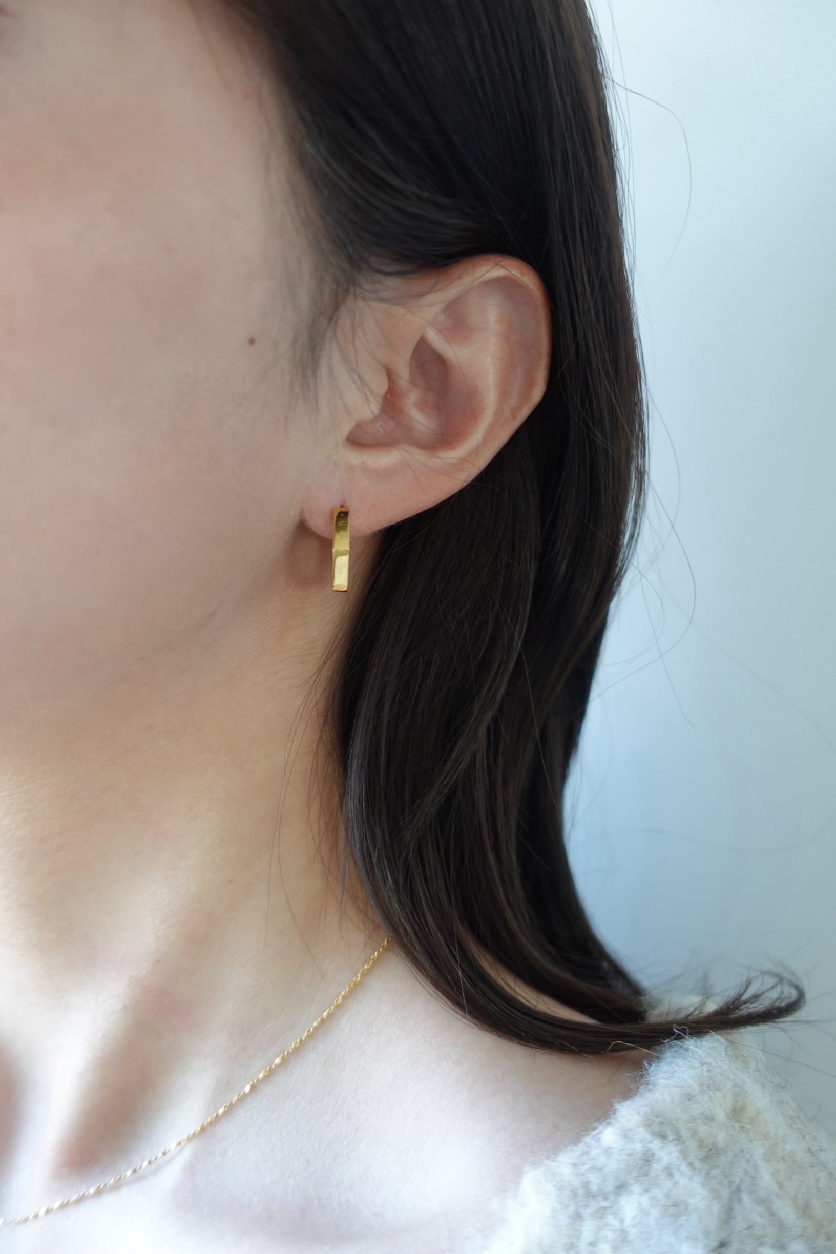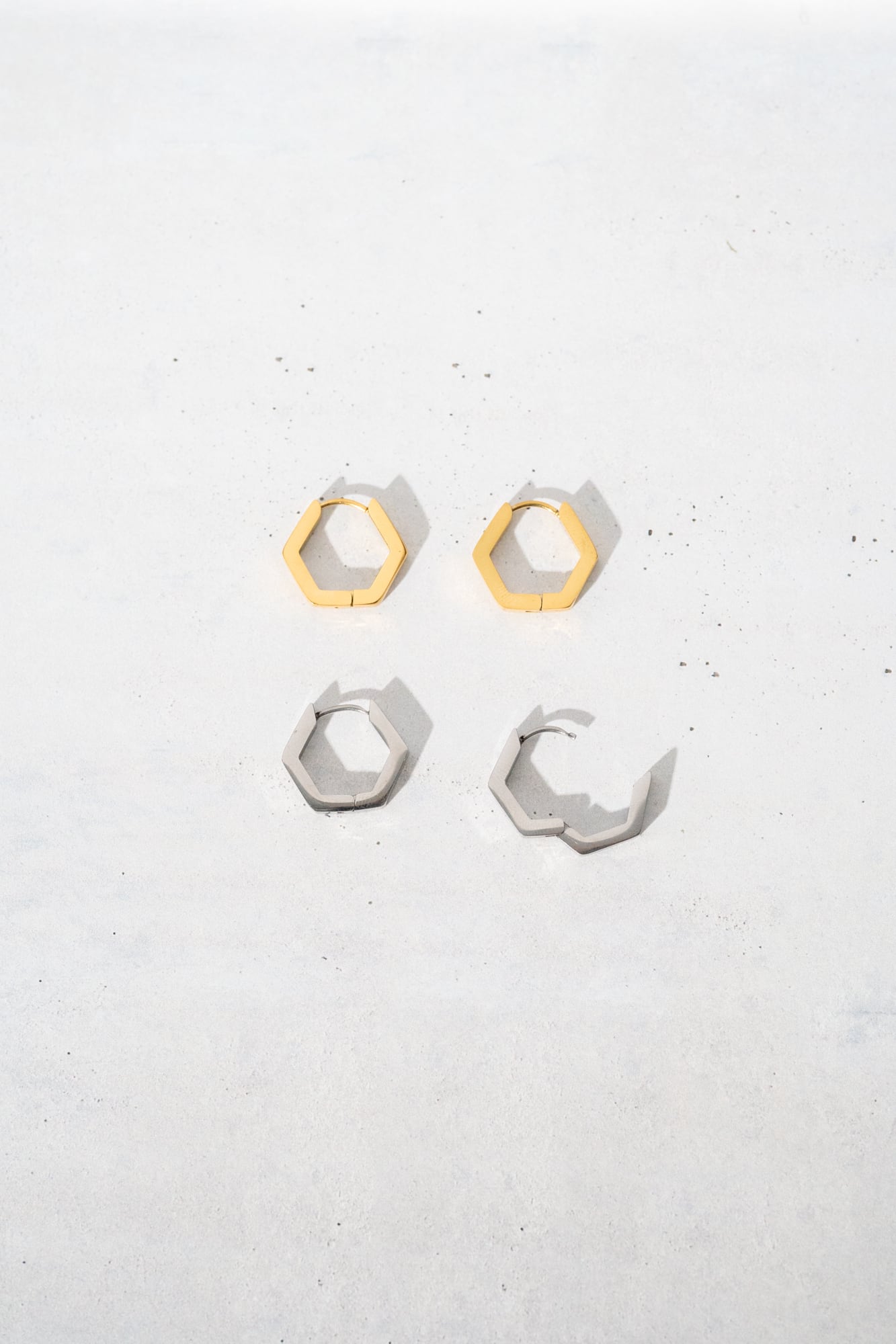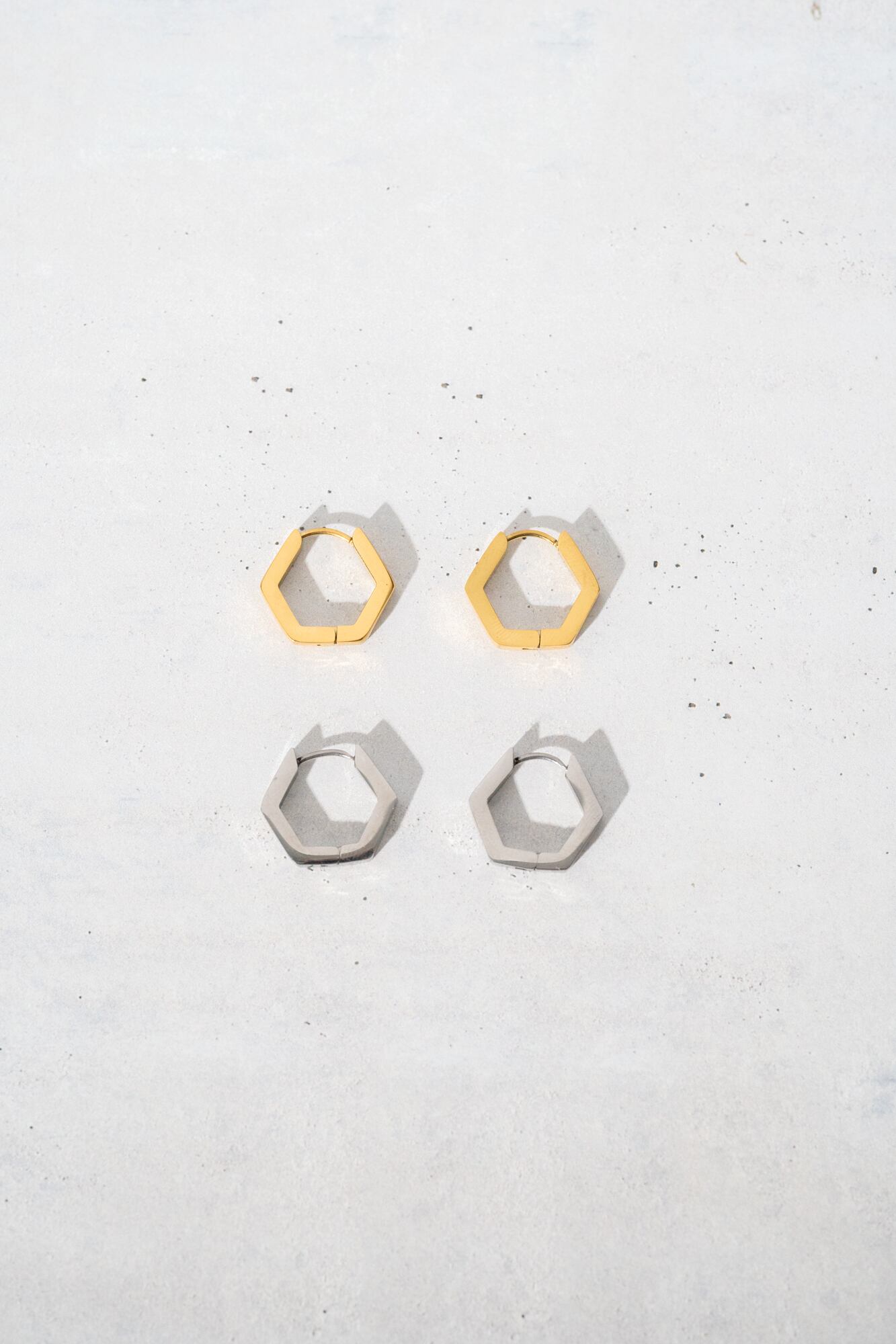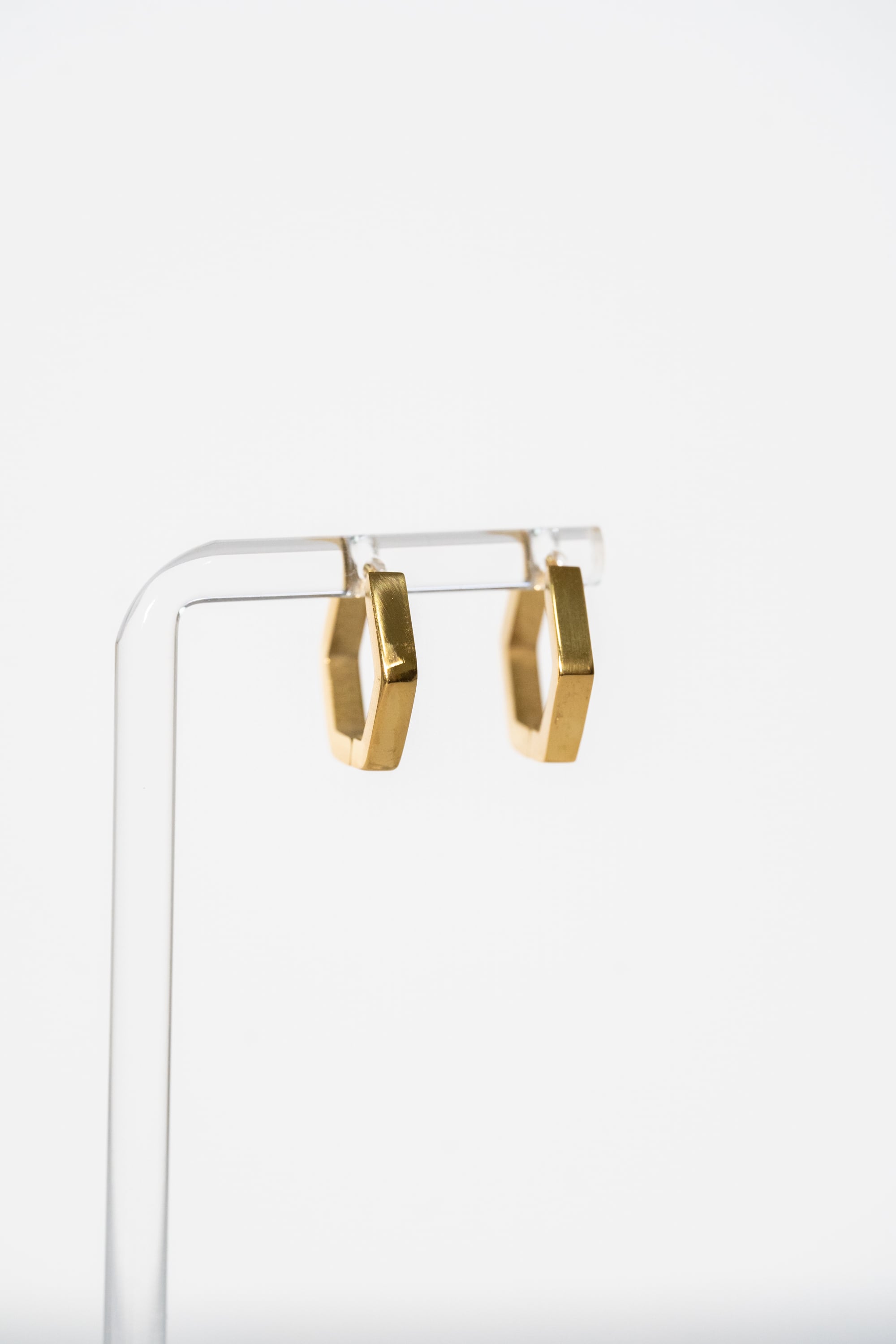 6角形のシンプルなフープピアス。キャッチレスでご使用いただけるピアスです。