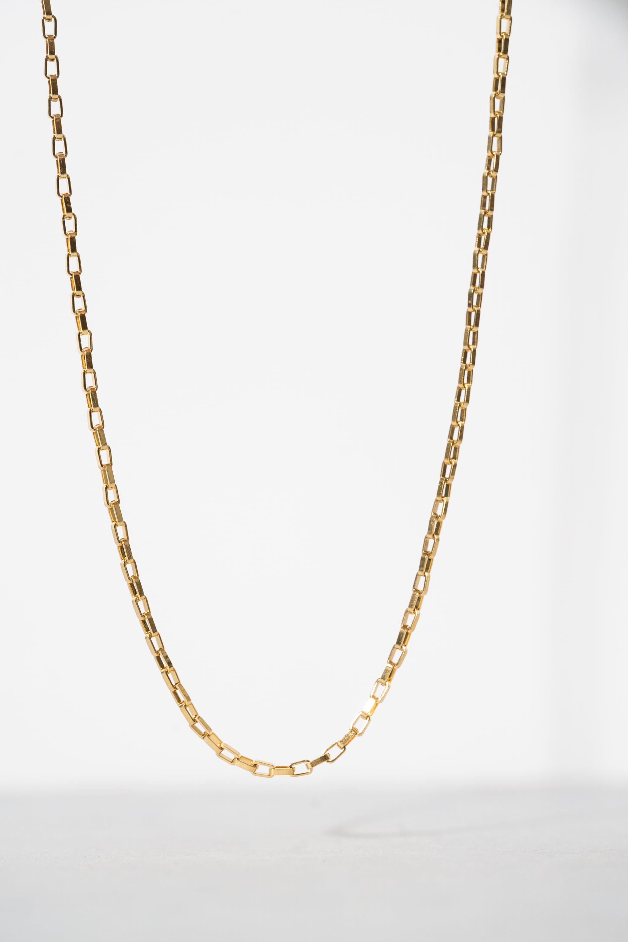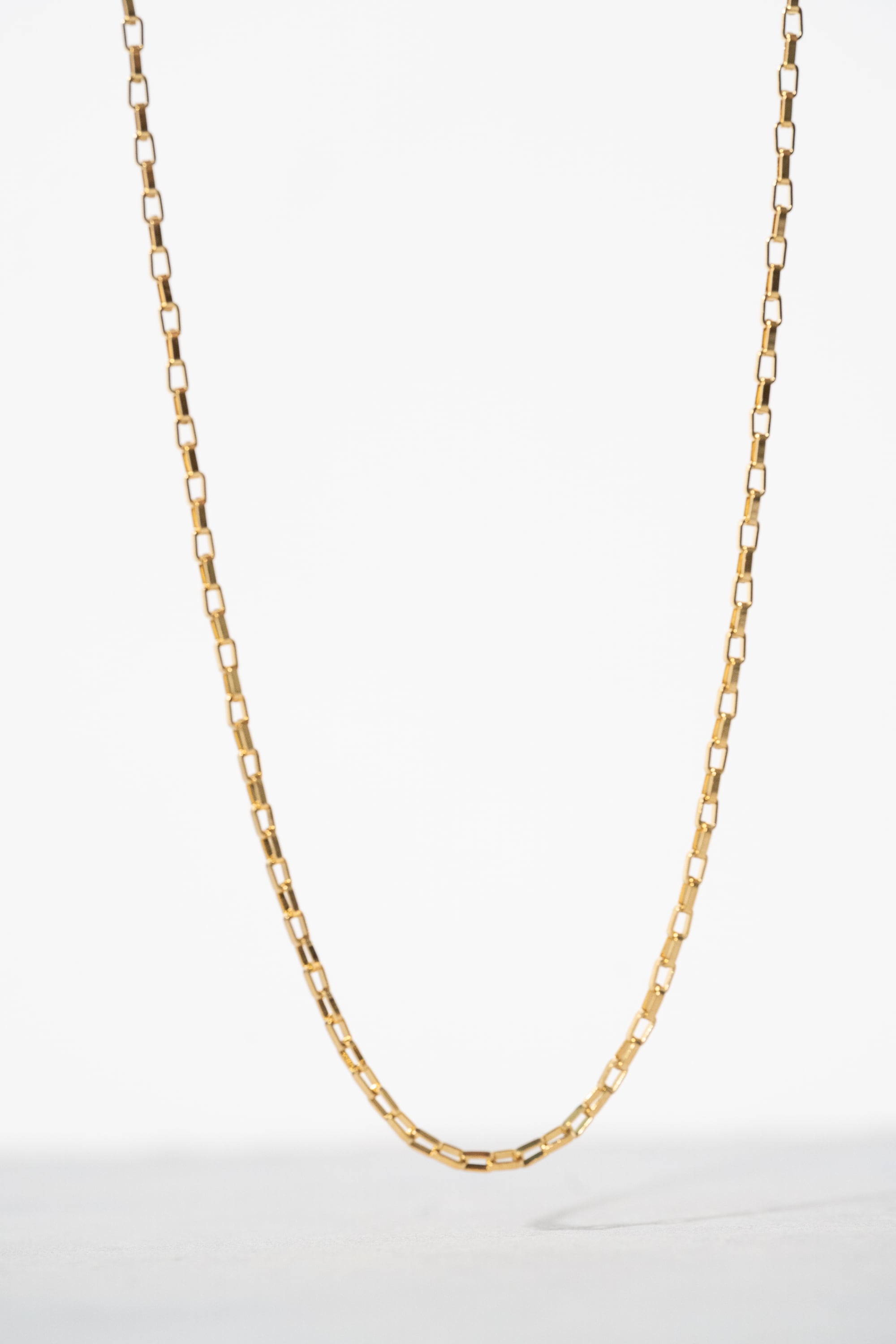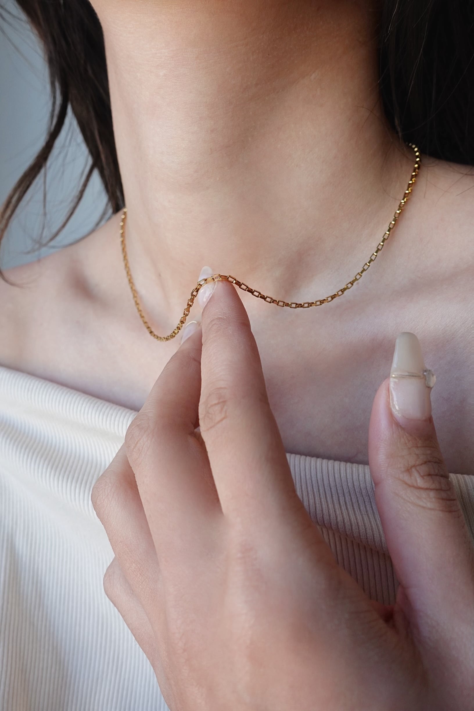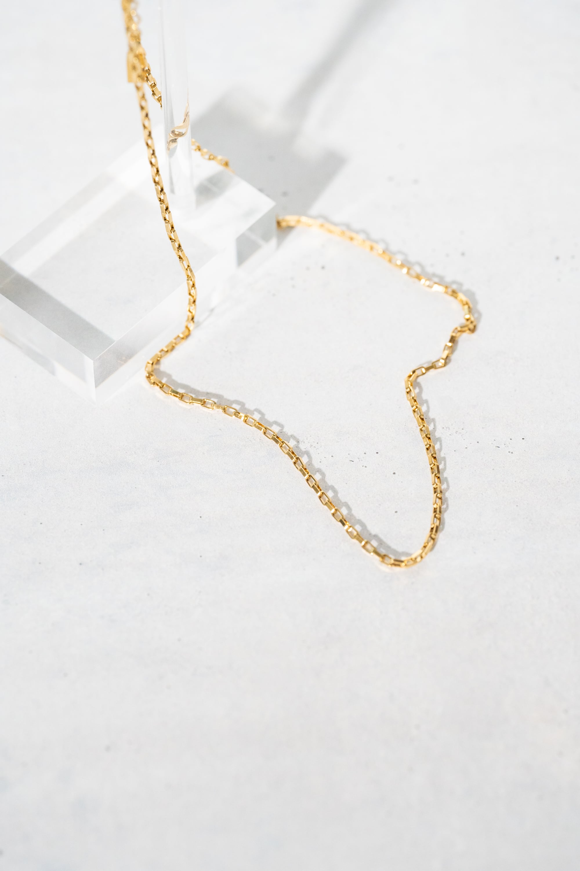 細身で細やかな長方形パーツを繋ぎ合わせた幅1.2mmの上品なシアーチェーンネックレス。