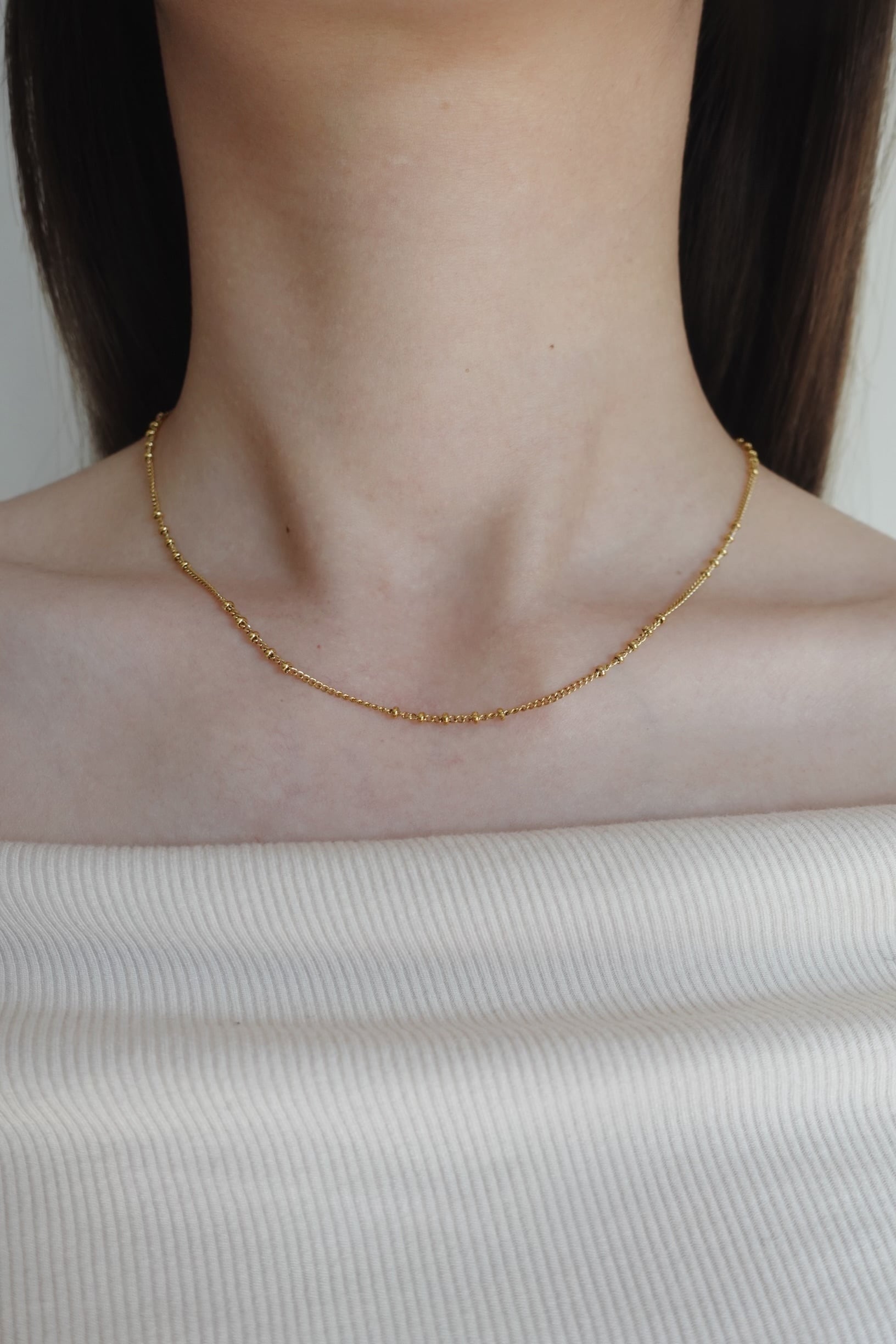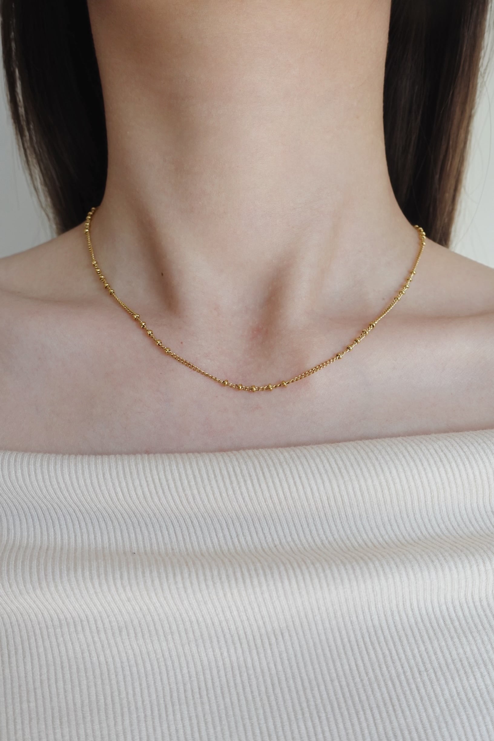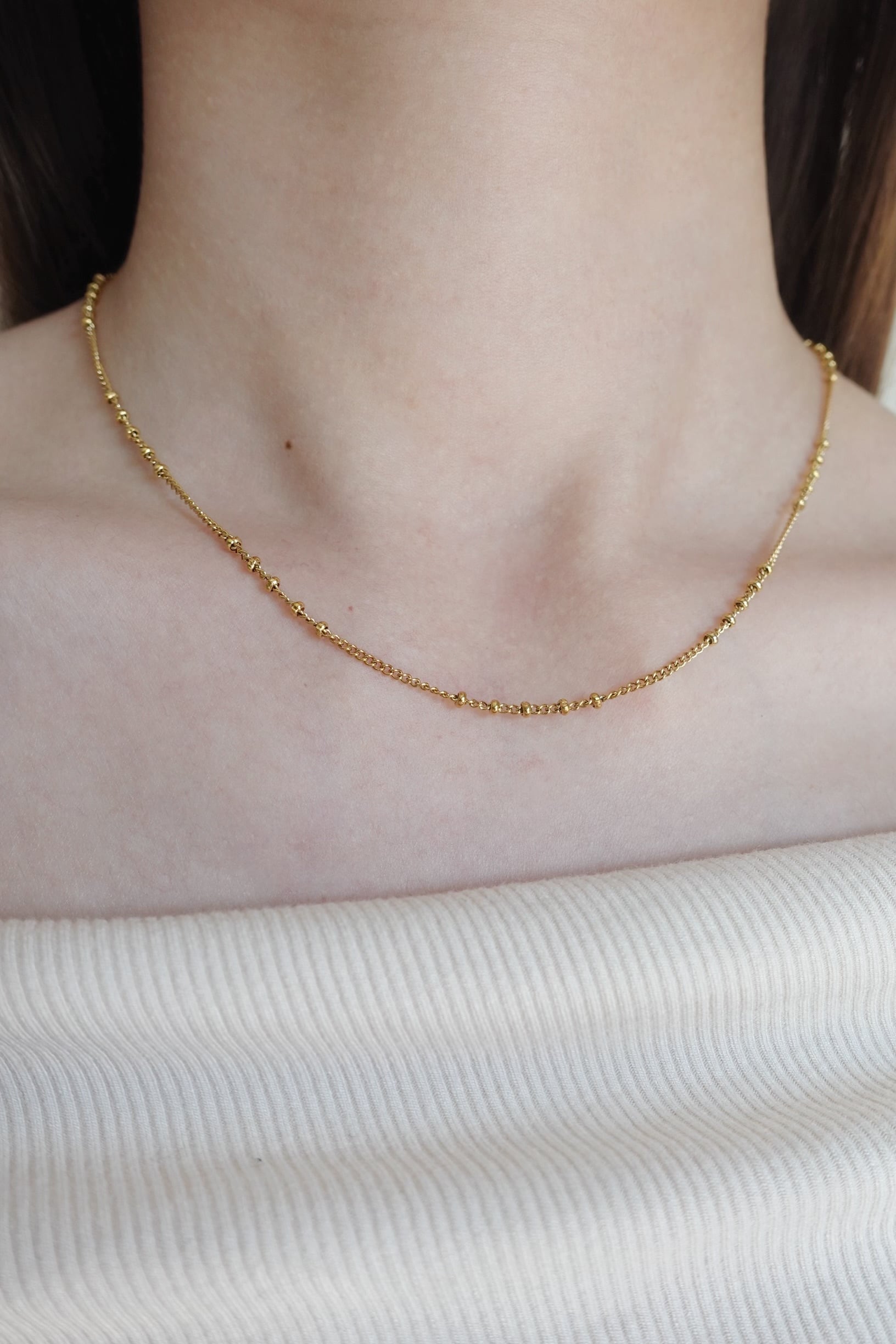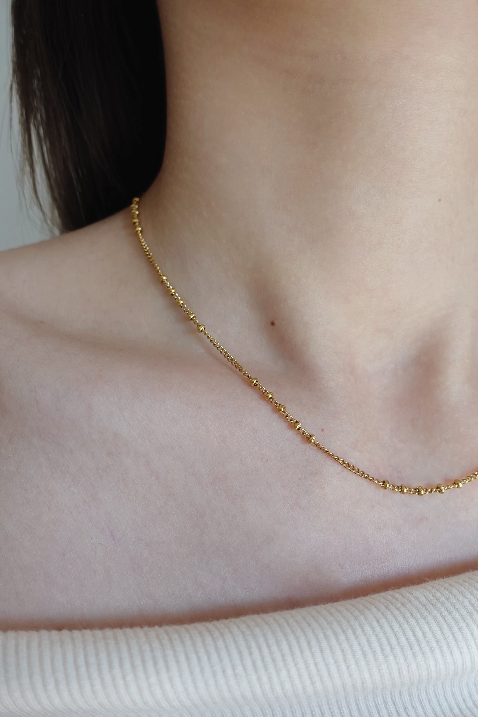細やかなボールデザインをチェーンの所々にあしらった華奢チェーンネックレス。