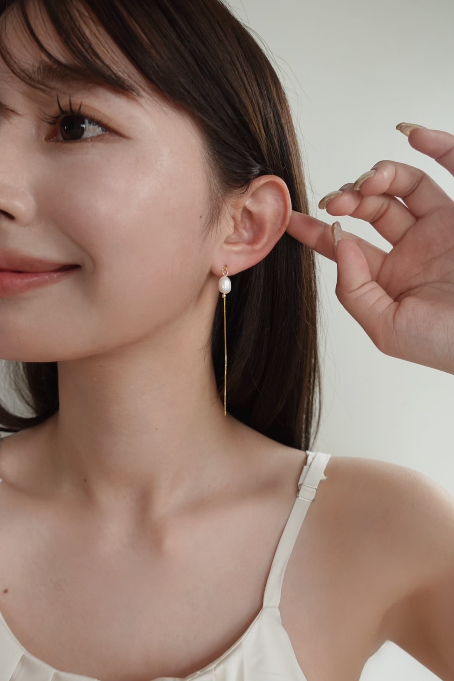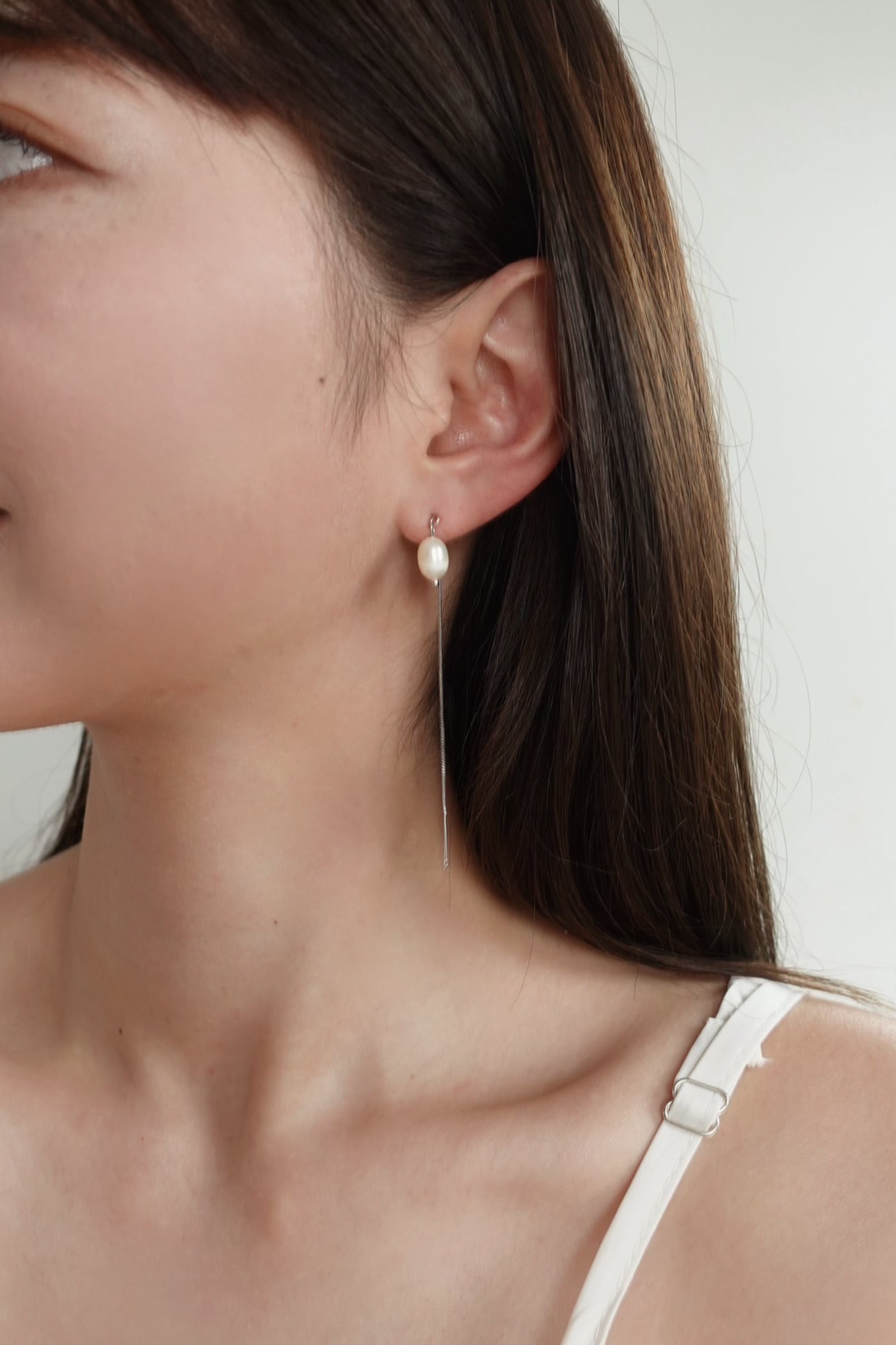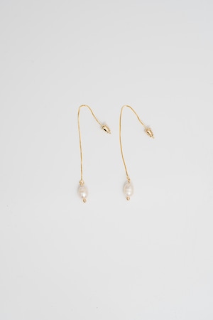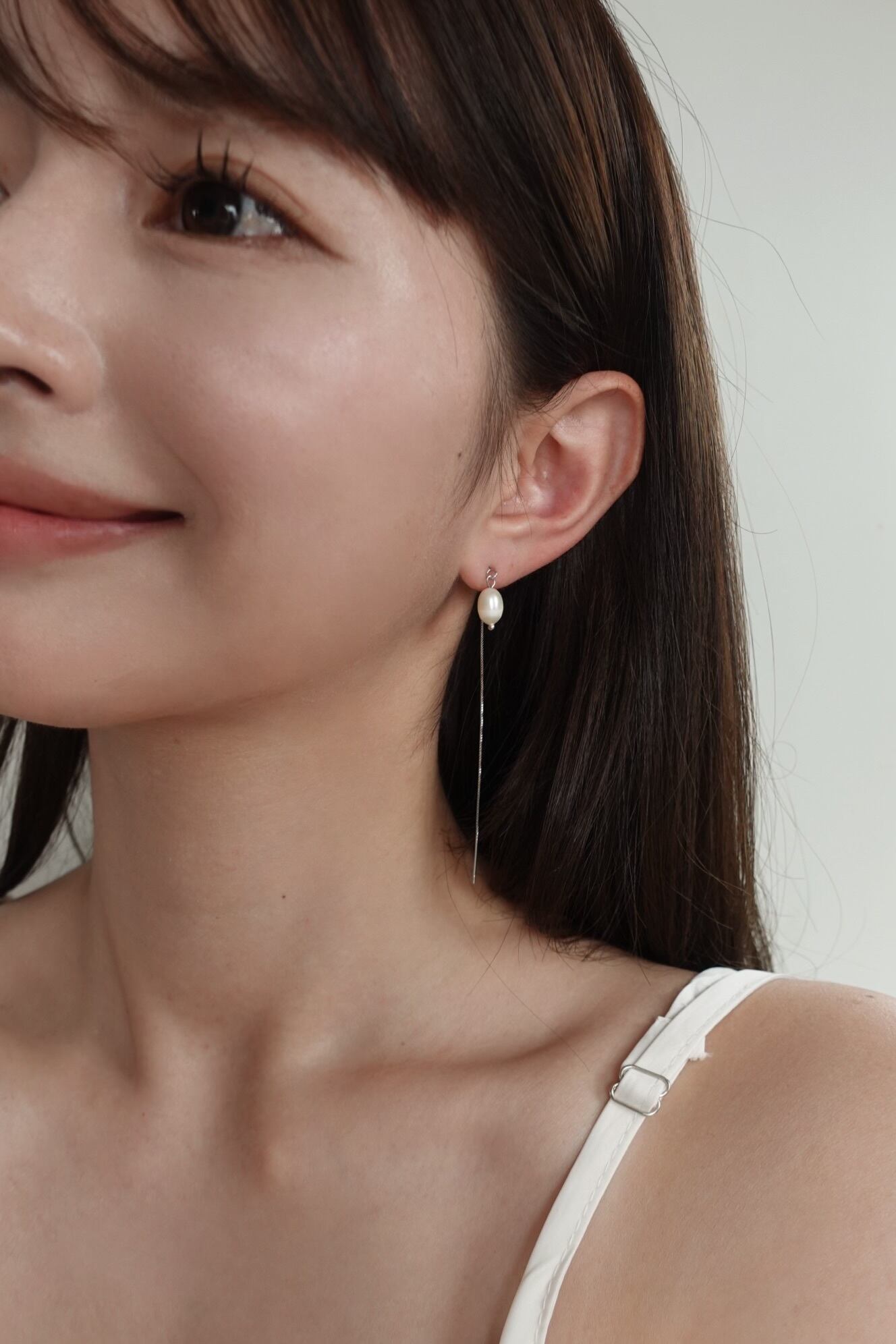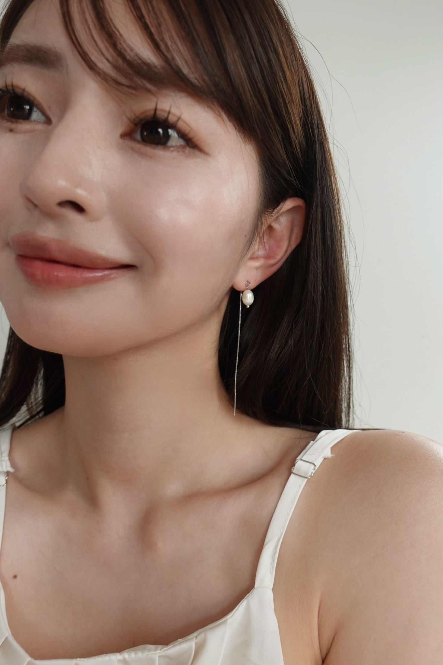 細く繊細なチェーンの先端に淡水パールを設置したアメリカンピアス。