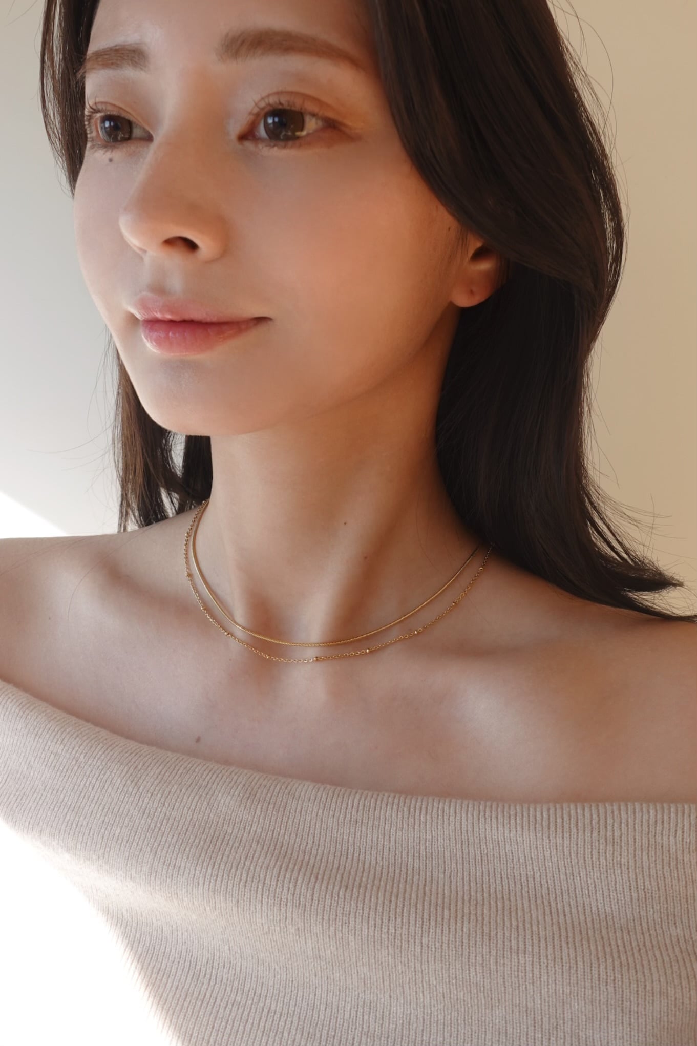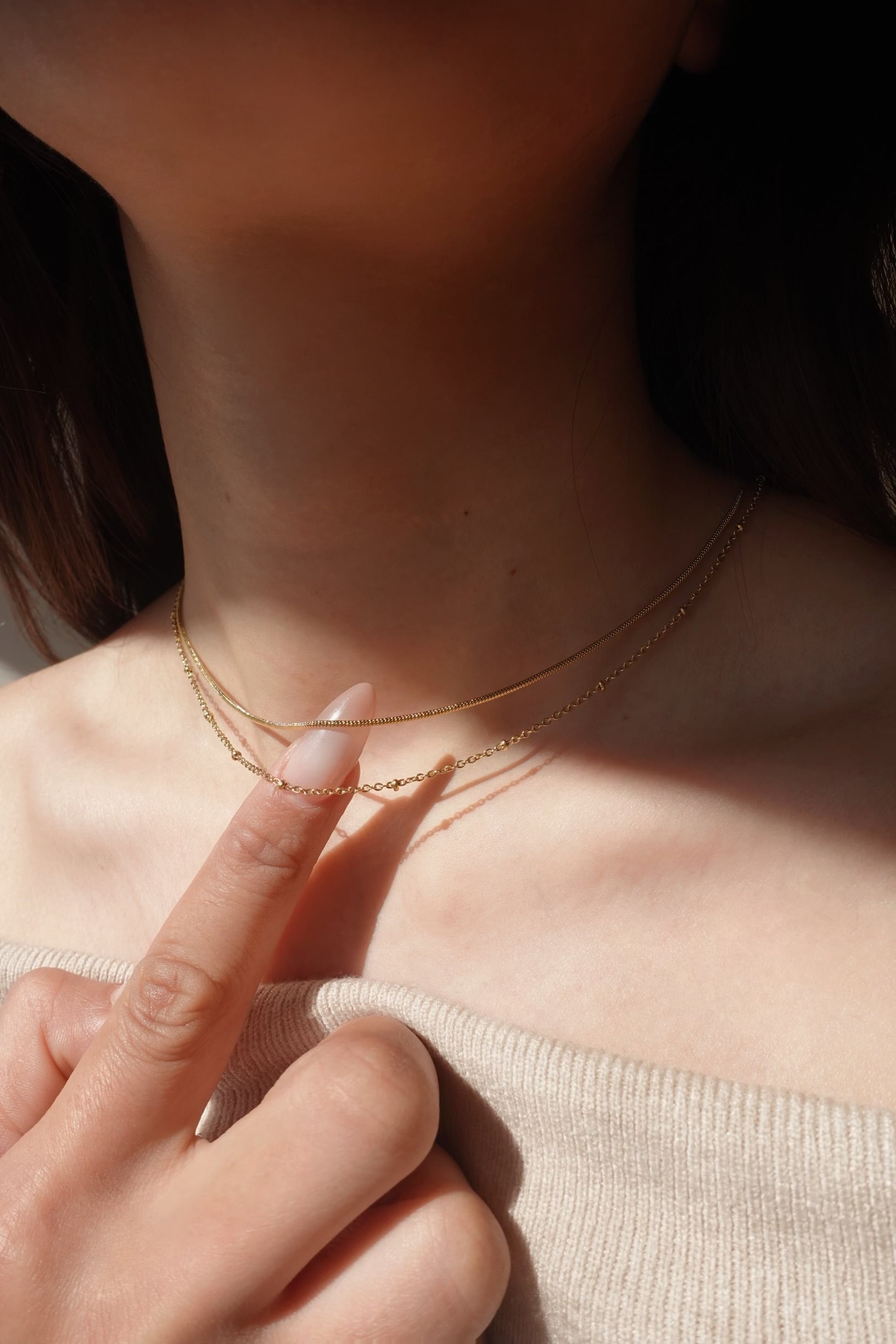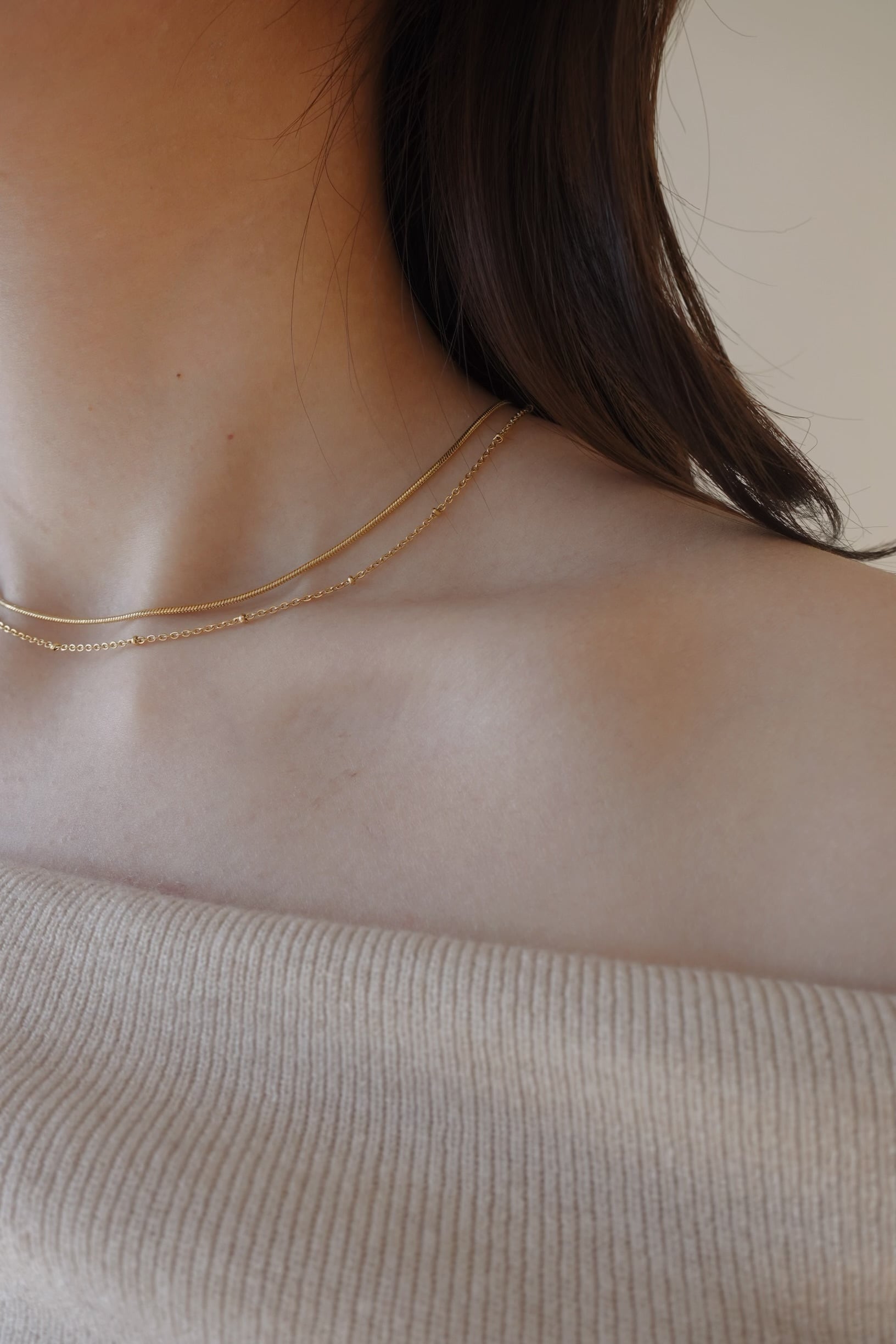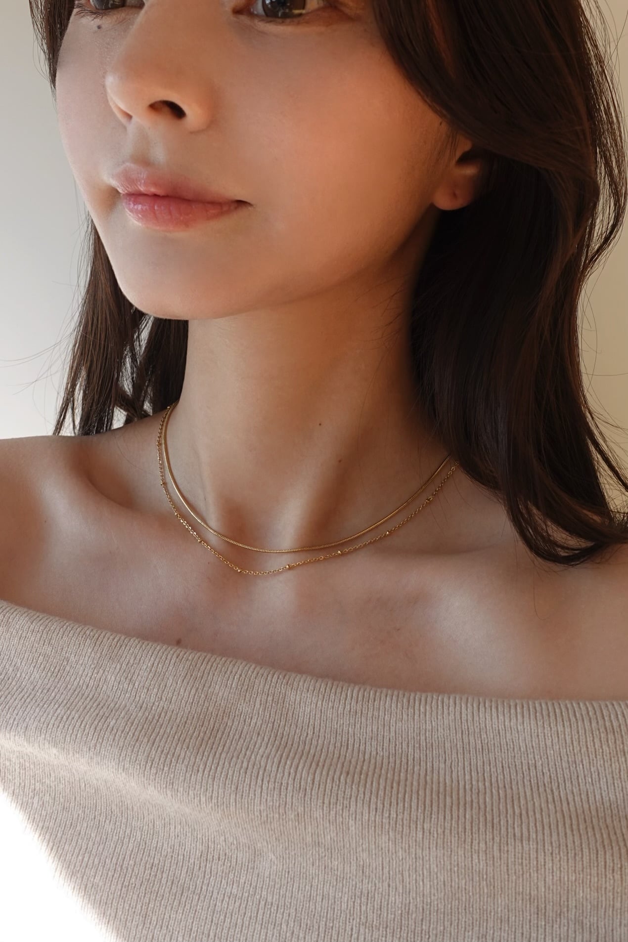 1つで2連の華奢チェーンネックレス。