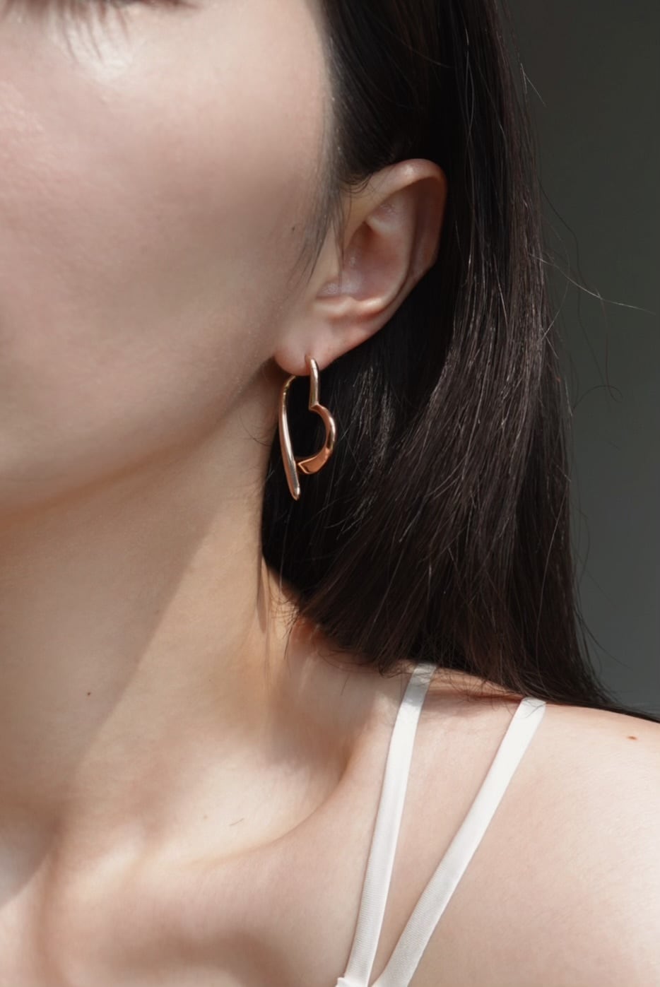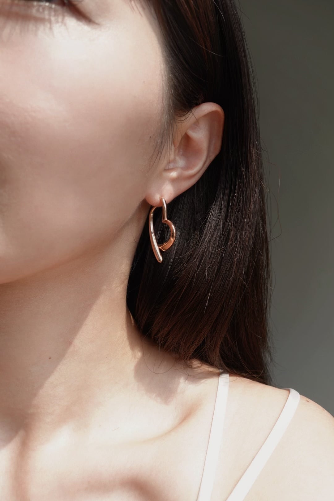ハート型になるようにデザインした揺れ動くお洒落なデザインピアス。